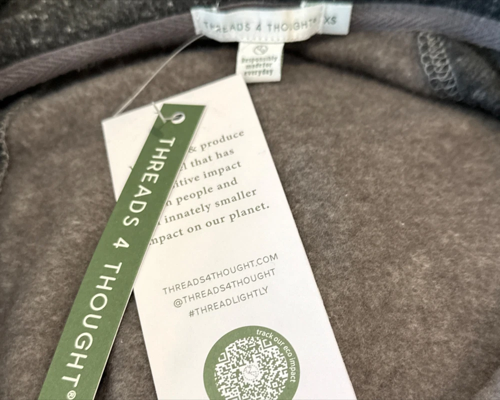 Threads 4 Thought most popular zip hoodie ever. Made from our sustainable triblend fleece, this ultra soft medium weight hoodie has the perfect amount of mechanical stretch and is built for everything from lounging to adventures. - Carbon Neutral - Sustainable Fabric - Zipper Front - Size - XS - Color - Gray - New with tags or EUC. No flaws - Material and Care Tag in Photos. 50% Recyled Polyester 38% Oganic Cotton 12% Rayon - Measurements approx laying flat Length 27" Armpit to Armpit 19" - Smoke and pet free home * I accept reasonable offers. * Same or next day shipping. * New items posted daily. * All used items are cleaned, washed, and/or thoroughly steamed before listing. * Bundle discounts in closet Thank you for your consideration. Size: XS