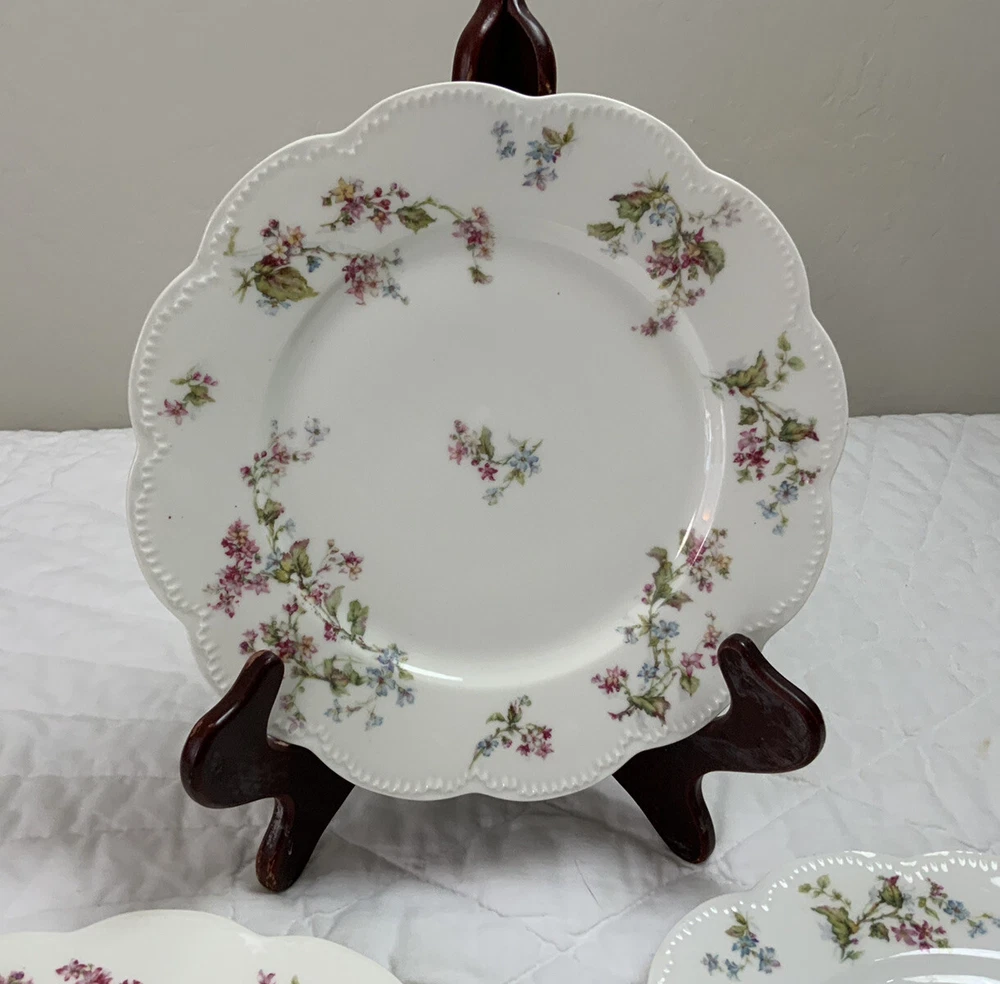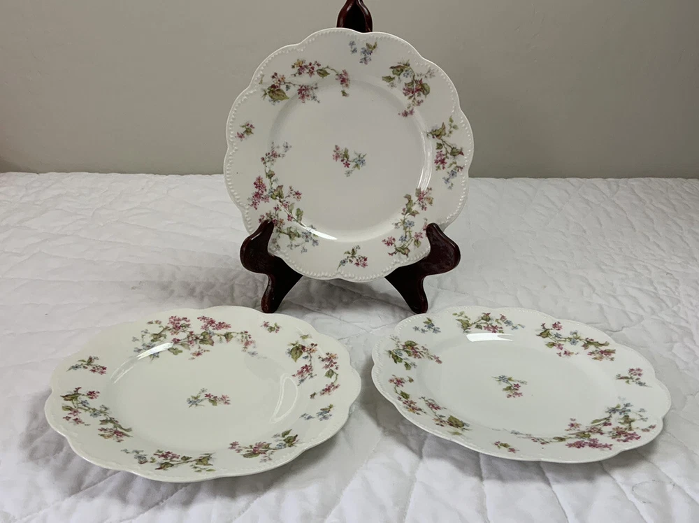 Three Antique Dinner Plates, Floral Design, Haviland France Limoges