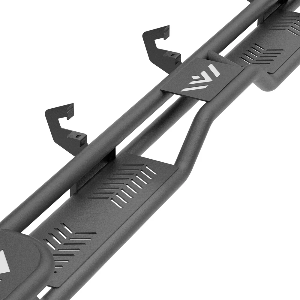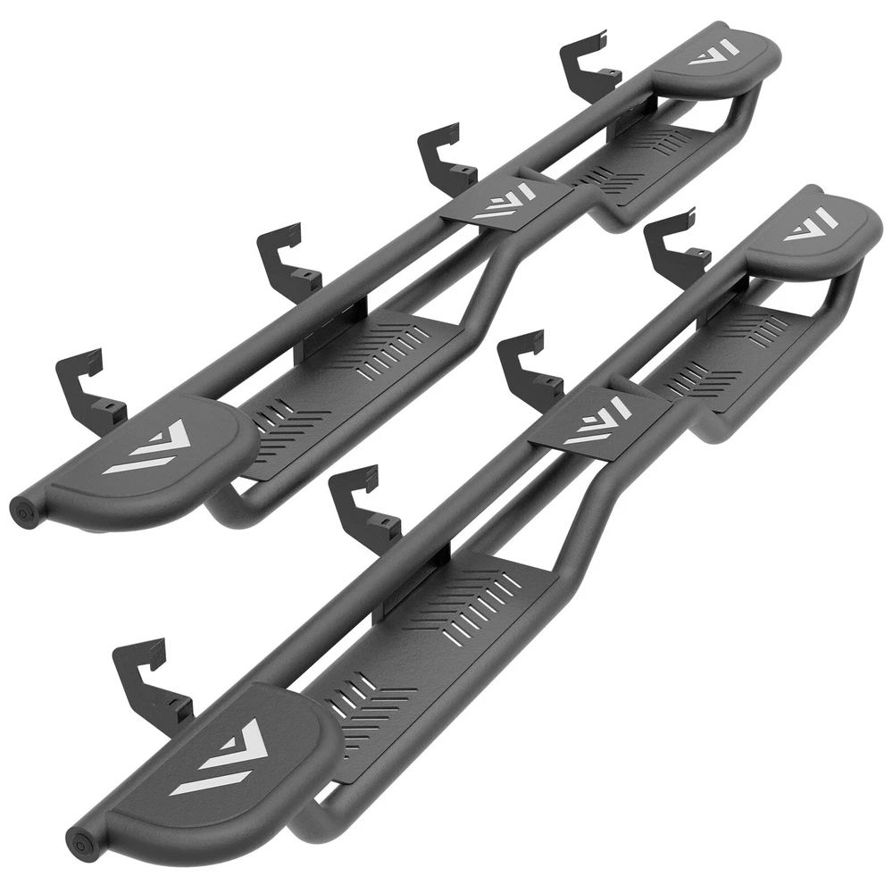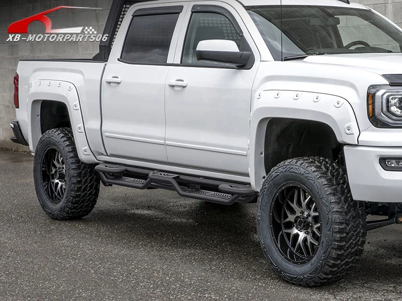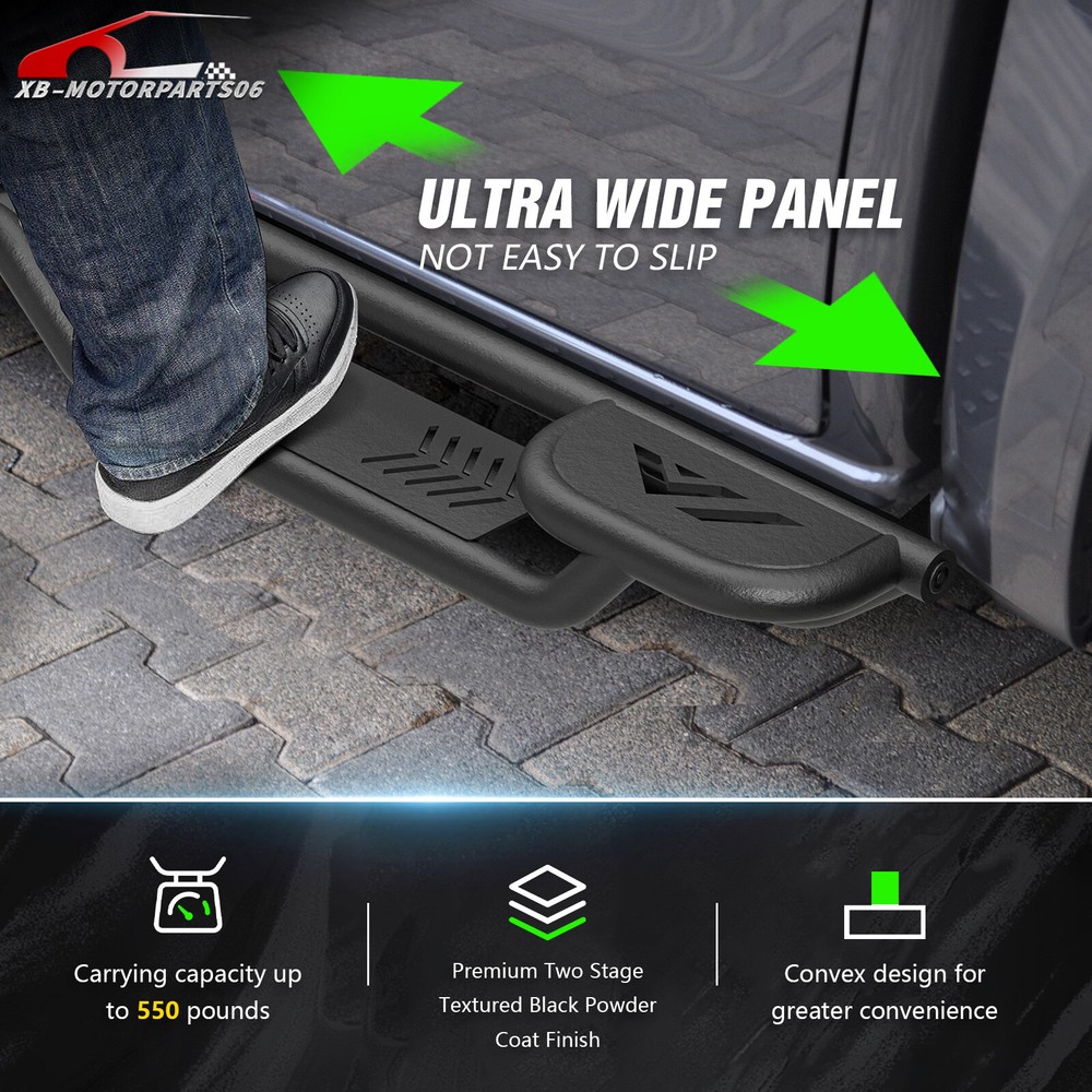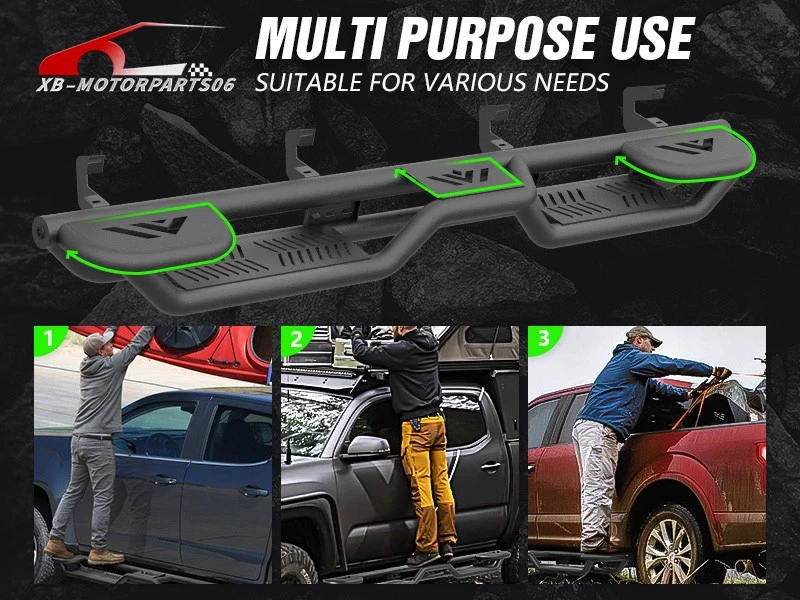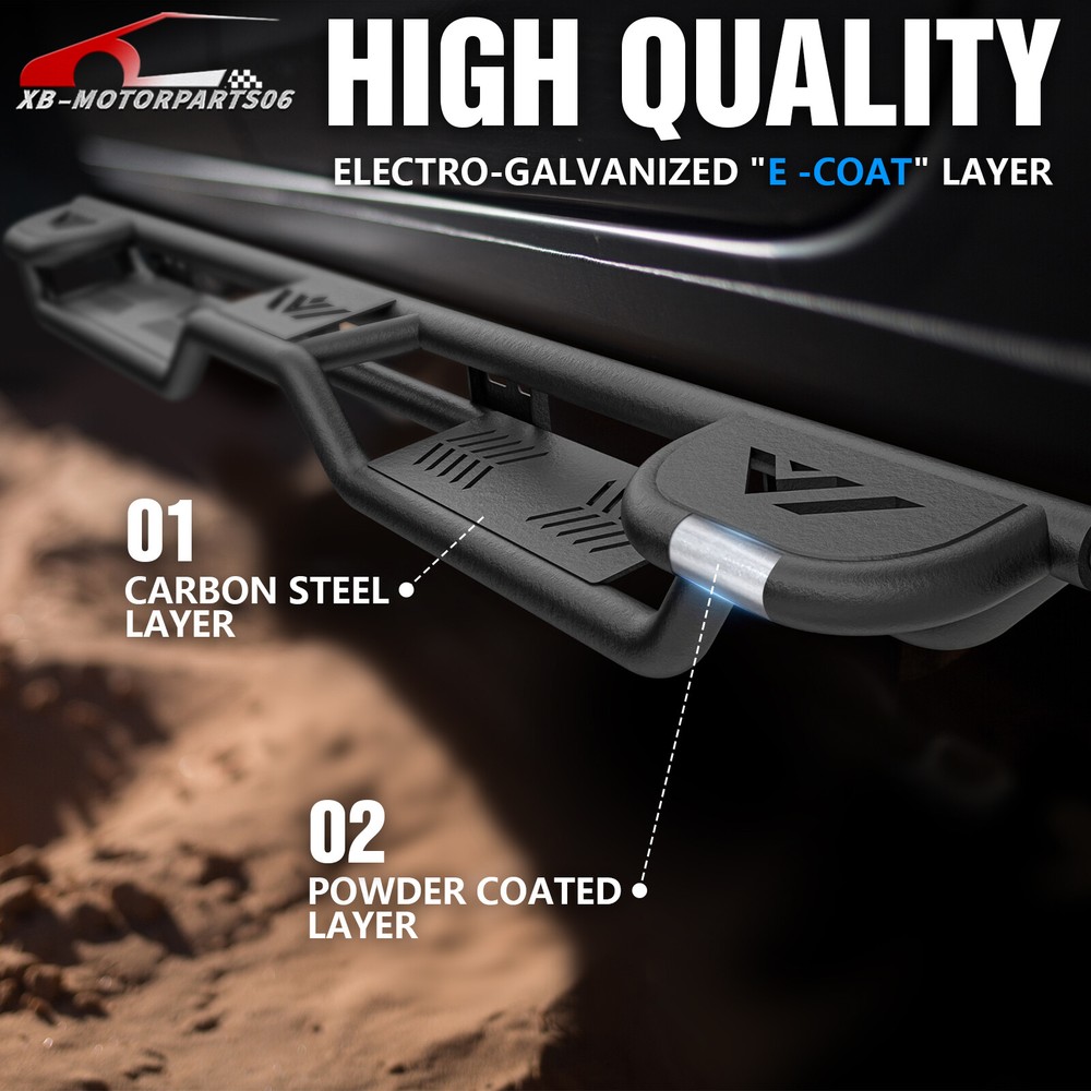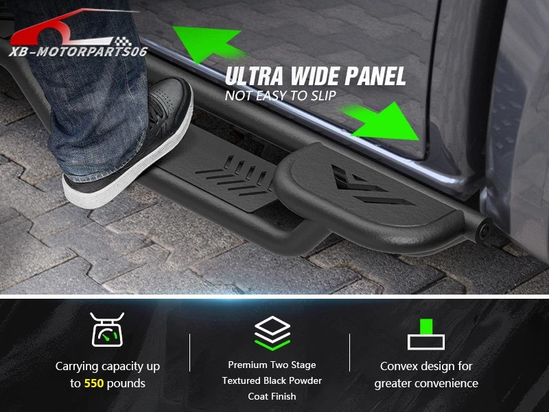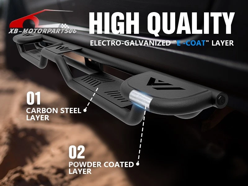 Three Raised Steps Running Boards For 20-26 Silverado&Sierra 2500 3500HD CrewCab Suitable Models : Compatible with 2019-2026 Chevy Silverado & GMC Sierra 1500, 2020-2026 Chevrolet Silverado/Sierra 2500 3500 HD Crew Cab ( Excl 2019 1500 LD/Limited ) Package Includes : 2 x Running Boards Side Steps, brackets, instructions, and all necessary hardware Product Information : Product Dimensions: 80 x 11 x 9 inches Installation mode: Bolt-On Weight Limit: 550LBS Placement on Vehicle: Left and Right Item Weight: 78.28 pounds Material: Carbon Steel Color: Black (hand measurements may have an error of 2-3 mm/0.078-0.118 in) Feature: ① Three Raised Steps for easy access to the roof, allowing multiple users to work on the vehicle simultaneously; ② Dual-layer Layout provides enhanced convenience for vehicles equipped with lift kits and oversized tires, offering easier access to the roof while maintaining sufficient ground clearance; ③ The high-quality black powder coating provides outstanding rust and corrosion resistance. Constructed from heavy-duty 2mm carbon steel, each side can withstand a weight of 550 pounds. Precision laser cutting and stamping techniques contribute to a non-slip step surface and enhanced traction; ④ Simple bolt-on installation without the need for drilling or cutting. Precisely aligned mounting holes require only about 20 minutes for complete setup ; Warranty Period : 2 year Standard Shipping (FedEx Ground or FedEx Home Delivery) Will usually ship within 3 business days of receiving cleared payment Suitable Models : Compatible with 2019-2026 Chevy Silverado & GMC Sierra 1500, 2020-2026 Chevrolet Silverado/Sierra 2500 3500 HD Crew Cab ( Excl 2019 1500 LD/Limited ) Package Includes : 2 x Running Boards Side Steps, brackets, instructions, and all necessary hardware Product Information : Product Dimensions: 80 x 11 x 9 inches Installation mode: Bolt-On Weight Limit: 550LBS Placement on Vehicle: Left and Right Item Weight: 78.28 pounds Material: Carbon Steel Color: Black (hand measurements may have an error of 2-3 mm/0.078-0.118 in) Feature: ① Three Raised Steps for easy access to the roof, allowing multiple users to work on the vehicle simultaneously; ② Dual-layer Layout provides enhanced convenience for vehicles equipped with lift kits and oversized tires, offering easier access to the roof while maintaining sufficient ground clearance; ③ The high-quality black powder coating provides outstanding rust and corrosion resistance. Constructed from heavy-duty 2mm carbon steel, each side can withstand a weight of 550 pounds. Precision laser cutting and stamping techniques contribute to a non-slip step surface and enhanced traction; ④ Simple bolt-on installation without the need for drilling or cutting. Precisely aligned mounting holes require only about 20 minutes for complete setup ; Warranty Period : 2 year