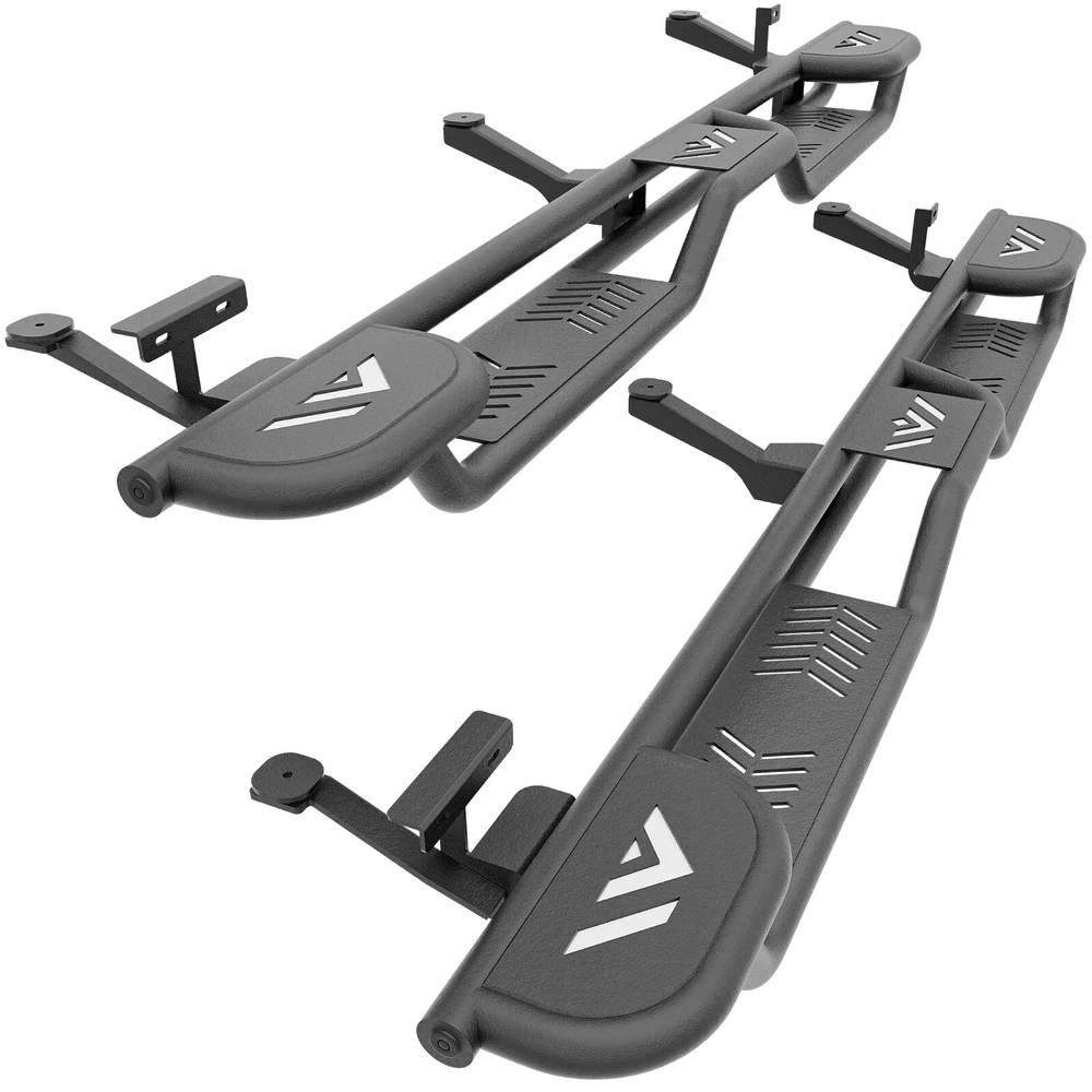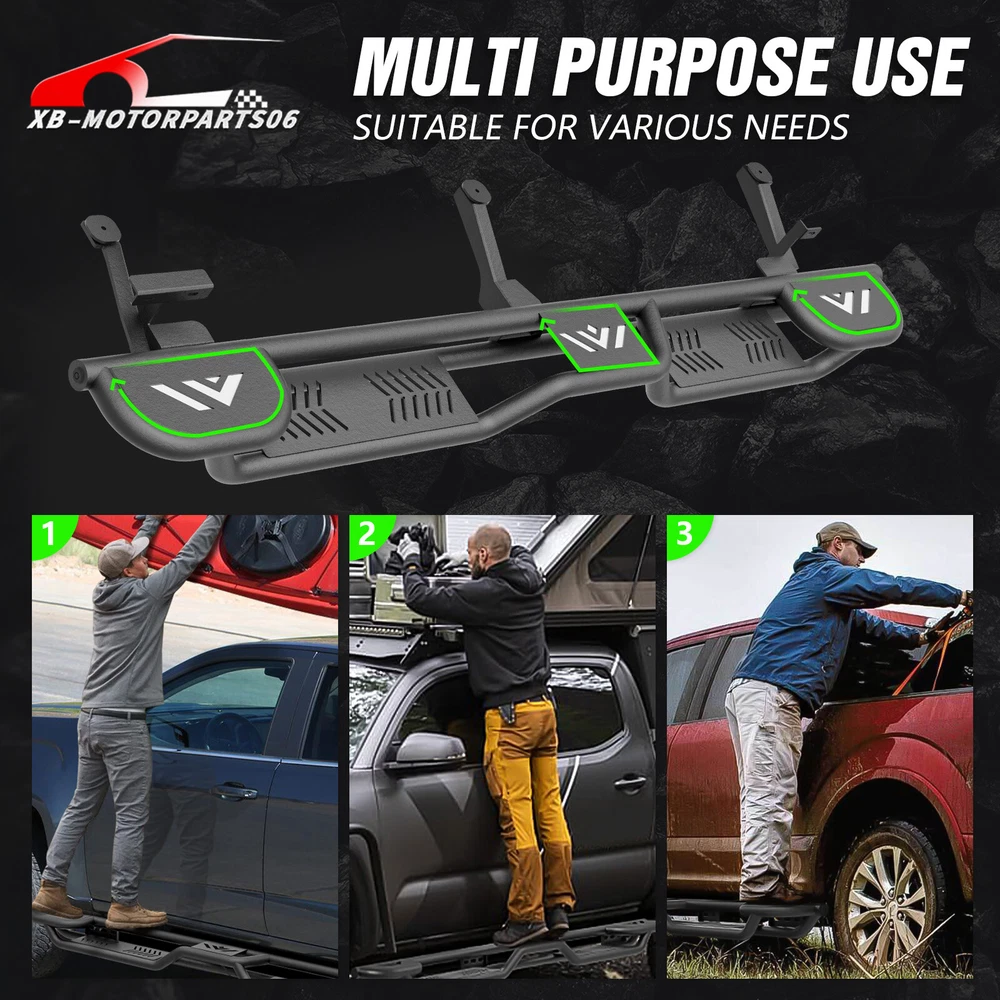 Three Raised Steps Side Running Boards For 2002-2008 Ram 1500 Double/ExtendedCab Suitable Models : Compatible with 2002-2008 Dodge Ram 1500, 2003-2009 Ram 2500 3500 Double/Extended Cab Package Includes : 2 x Running Boards Side Steps, brackets, instructions, and all necessary hardware Product Information : Product Dimensions: 76 x 7 x 5 inches Installation mode: Bolt-On Weight Limit: 550LBS Placement on Vehicle: Left and Right Item Weight: 75.90 pounds Material: Carbon Steel Color: Black (hand measurements may have an error of 2-3 mm/0.078-0.118 in) Feature: ① Three Raised Steps for easy access to the roof, allowing multiple users to work on the vehicle simultaneously; ② Dual-layer Layout provides enhanced convenience for vehicles equipped with lift kits and oversized tires, offering easier access to the roof while maintaining sufficient ground clearance; ③ The high-quality black powder coating provides outstanding rust and corrosion resistance. Constructed from heavy-duty 2mm carbon steel, each side can withstand a weight of 550 pounds. Precision laser cutting and stamping techniques contribute to a non-slip step surface and enhanced traction; Warranty Period : 2 year Standard Shipping (FedEx Ground or FedEx Home Delivery) Will usually ship within 3 business days of receiving cleared payment Suitable Models : Compatible with 2002-2008 Dodge Ram 1500, 2003-2009 Ram 2500 3500 Double/Extended Cab Package Includes : 2 x Running Boards Side Steps, brackets, instructions, and all necessary hardware Product Information : Product Dimensions: 76 x 7 x 5 inches Installation mode: Bolt-On Weight Limit: 550LBS Placement on Vehicle: Left and Right Item Weight: 75.90 pounds Material: Carbon Steel Color: Black (hand measurements may have an error of 2-3 mm/0.078-0.118 in) Feature: ① Three Raised Steps for easy access to the roof, allowing multiple users to work on the vehicle simultaneously; ② Dual-layer Layout provides enhanced convenience for vehicles equipped with lift kits and oversized tires, offering easier access to the roof while maintaining sufficient ground clearance; ③ The high-quality black powder coating provides outstanding rust and corrosion resistance. Constructed from heavy-duty 2mm carbon steel, each side can withstand a weight of 550 pounds. Precision laser cutting and stamping techniques contribute to a non-slip step surface and enhanced traction; Warranty Period : 2 year