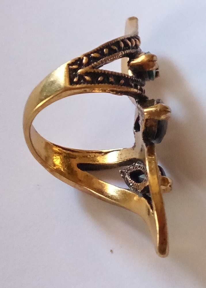Brand: Unbranded Ring Size: 7 Metal: Yellow Gold Plated Material: Rhinestone Gemstone Clarity Grade: N/A Cut Grade: N/A Occasion: Anniversary, Birthday, Christening, Christmas, Confirmation/Communion, Engagement, Father's Day, Graduation, Mother's Day, Valentine's Day, Wedding Number of Gemstones: 3 Color: Gold Secondary Stone: Rhinestones Theme: Beauty Country/Region of Manufacture: Unknown Main Stone Creation: Simulated Antique: No Main Stone Shape: Round Main Stone: Rhinestones Personalize: No Seller Notes: “New” Type: Ring Wholesale: No Handmade: Yes Signed: No Base Metal: Unknown Shape: Round Band Width: Size 7 Era: Undated Setting Style: Bar Country of Origin: China Main Stone Treatment: Not Enhanced Main Stone Color: Blue Style: Band Customized: No Metal Purity: N/A Seller Warranty: No