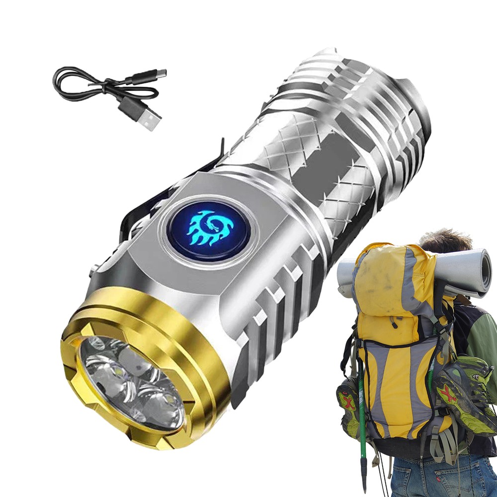 Three-Eyed Monster Mini Flashlight Flash Super Power Waterproof Outdoor Travel Bullet Points: Powerful lighting: With a super bright LED bulb and a frog eye lens, this mini flashlight can illuminate the darkest corners with concentrated lighting. It has 3 LED bulbs for extra brightness and durability. Illuminate Any Situation: Access 5 different lighting modes including strong, medium, low, flash, and SOS with our high lumens mini flashlight. Perfect for outdoor activities, indoor use, reading, accidents, and signaling for help. Powerful and long-lasting brightness: This high lumens mini flashlight features a built-in 18350 lithium battery and a smart chip that protects the battery from overcharging and overheating, ensuring lasting performance and safety. Rugged construction: Sealed and waterproof, this mini flashlight protects its internal circuits from rain and severe weather, while completely resisting shock and impact for added durability. Easy to carry: Don't get left in the dark; this high lumens mini flashlight with its mini appearance and pocket size design makes it effortless to take with you on the go. Say goodbye to added weight and hello to convenient illumination anywhere. Our high lumens mini flashlight provides powerful lighting with the ability to switch between strong, medium, low, flash, and SOS modes. Its compact size allows it to be easily put in your pocket, making it a convenient everyday carry item. Product material: ABS Waterproof performance: daily waterproof Gear: strong/medium/weak/flash/SOS Wick: 3 high-lumen lamp beads Power: 20W Battery: Built-in 18350 lithium battery Charging method: Type-C charging Color: black, silver Scope of use: Outdoor mountaineering/patrol security/night riding/camping/night lighting, etc. Product List: 1pcs * rechargeable mini flashlight 1pcs*Type-C charging cable 1.You can make a Credit payment via Paypal.Paypal will let you use MasterCard,Visa to pay. 2.Payment should be completed within 5 days after auction closed, or unpaid dispute will be filed for an closing auction.An unpaid case will be filled after 4 days. ● We strive for 100% customer satisfaction ! ● Positive Feedback is very important to us. ● We hope that you contact us immediately BEFORE you give us neutral or negative feedback, so that we can satisfactorily address your concerns. ● We promise to offer the lowest price and high quality produce. Dear buyers : ● Welcome to my store ! ● Your satisfaction is our top goal,we appreciate your patronizing. ● If you have any questions, please contact us before leave negative or neutral feedback, we will try our best to solve the issue to your satisfaction, thanks ! ● If you are satisfied with our service, please rate the details of the transaction (Detailed Seller Ratings) on eBay. ● Please always talk to us via ebay Message. ● We appreciate your business and look forward to growing our e-Bay sales with satisfied customers.