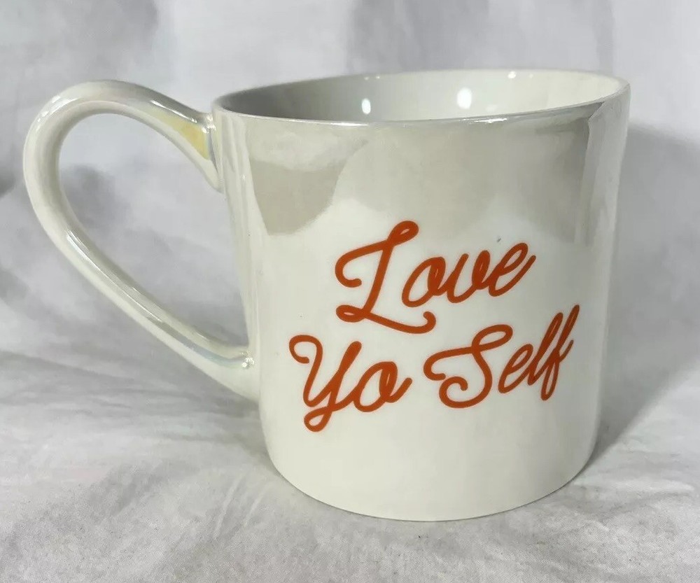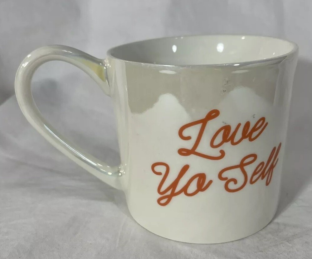 Threshold Coffee Mug- Love Yo Self Cup. In excellent condition. No chips or cracks. All occasions colorful iridescent with orange print. Tea or hot cocoa can be used as well. Microwave safe and dishwasher safe.