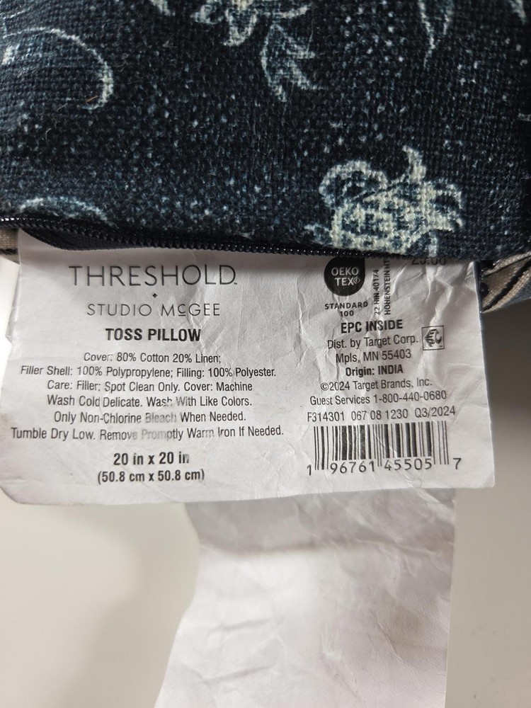 Threshold Studio McGee Toss Pillow 20x20 Blue Floral NEW! Removable cover SKU#11660