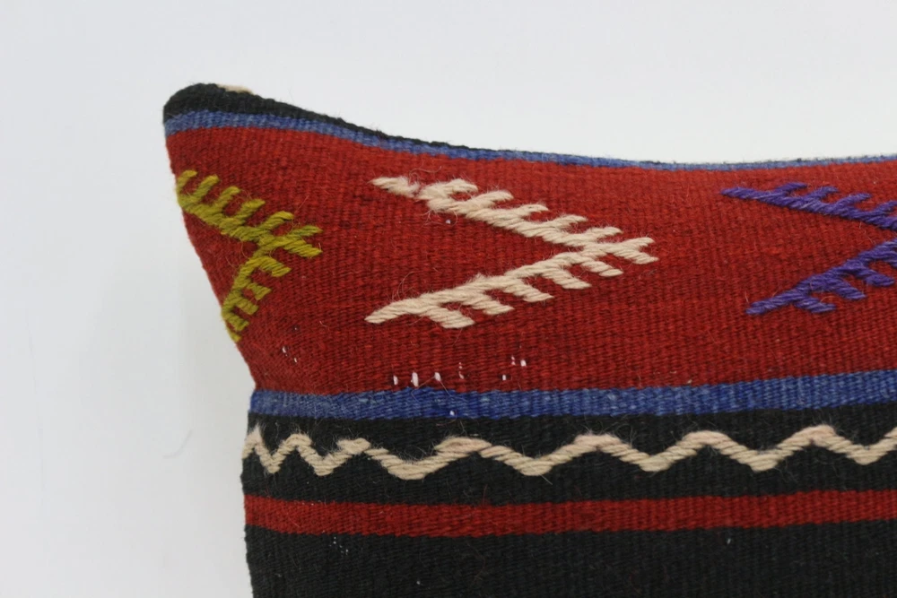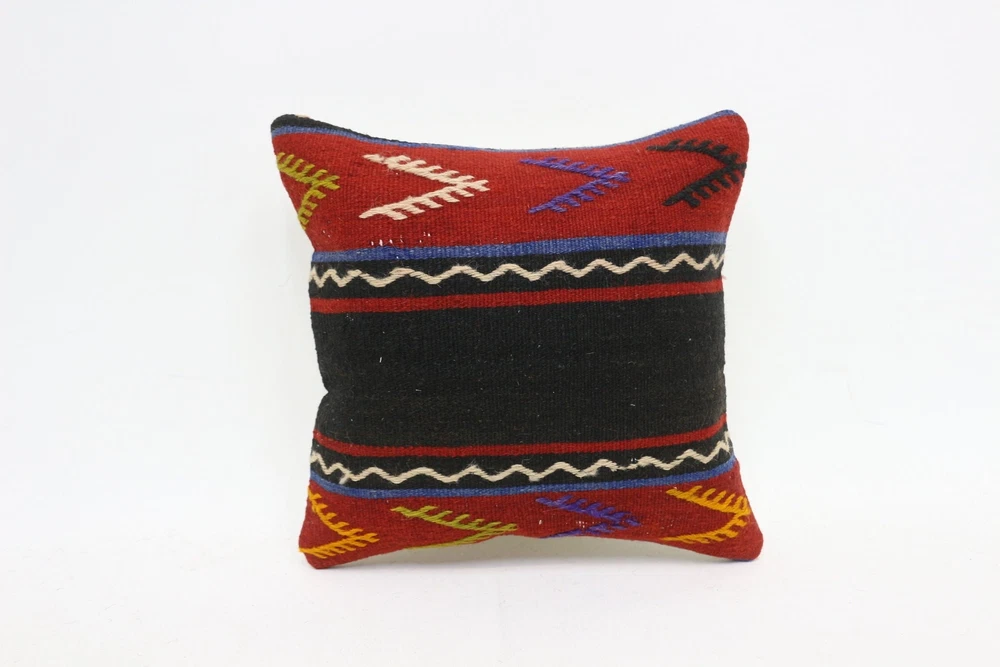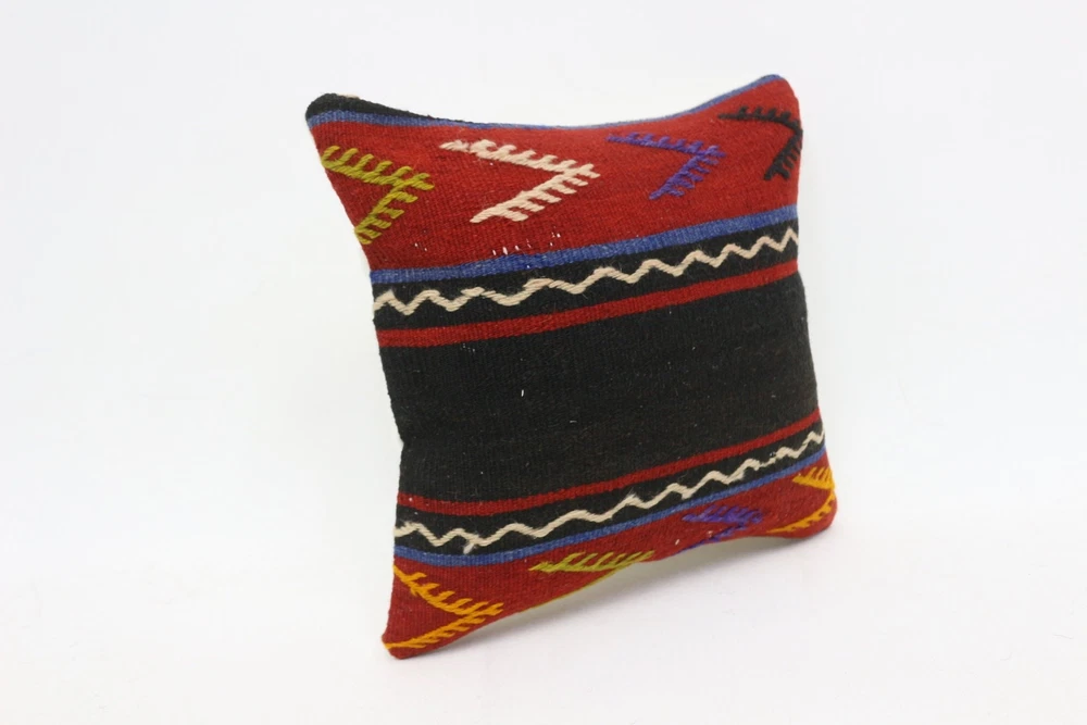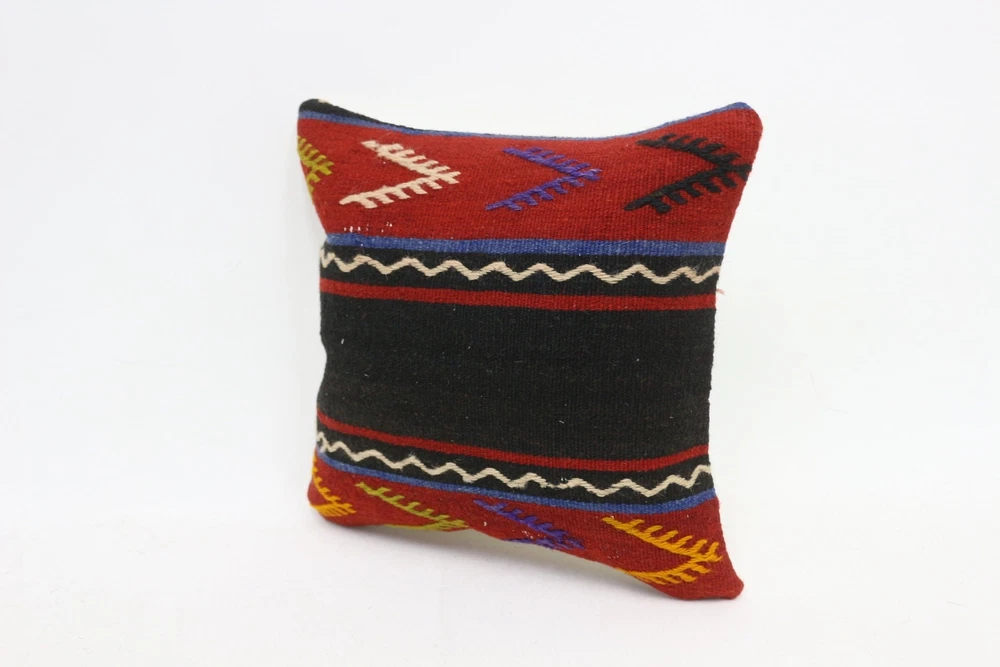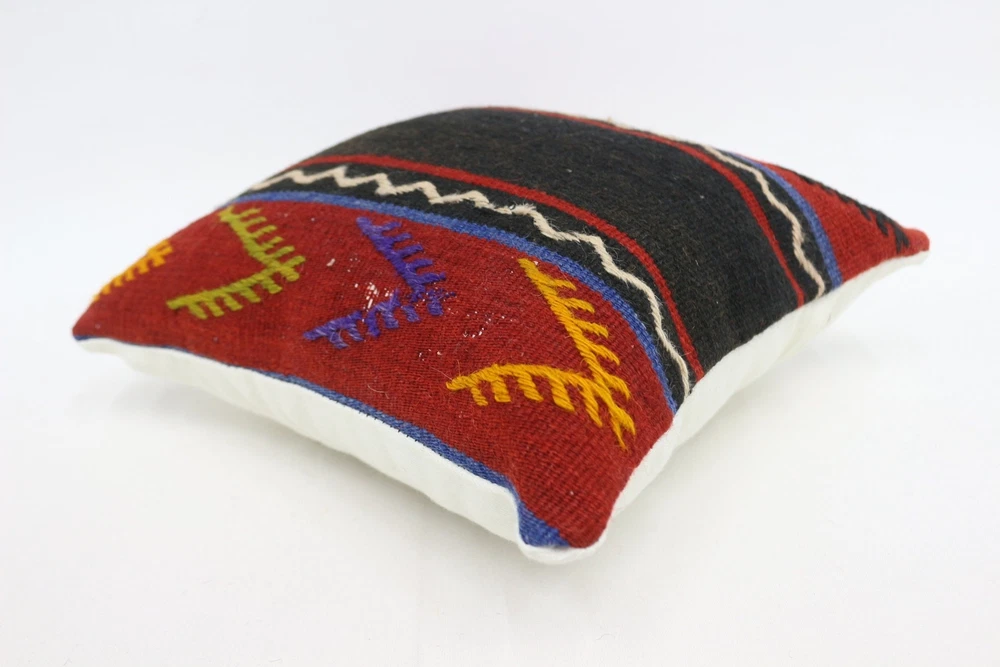 Throw Kilim Pillow, Handmade Kilim Cushion, 12"x12" Red Pillow Sham