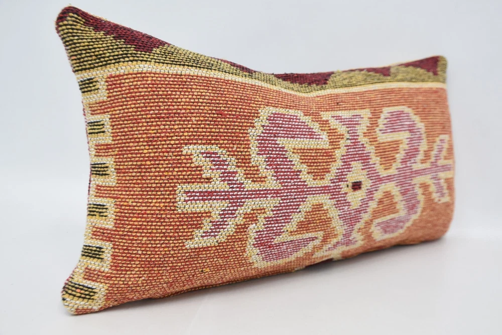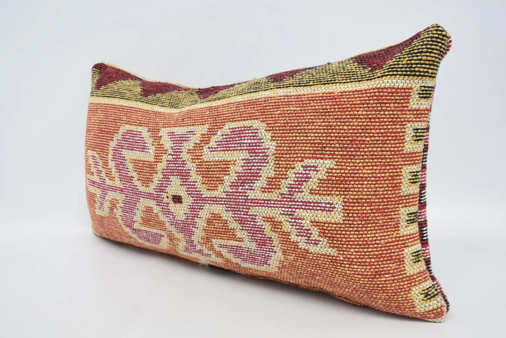 Throw Pillow Covers, 12"x24" Orange Pillow, Throw Pillow, Kilim Pillow