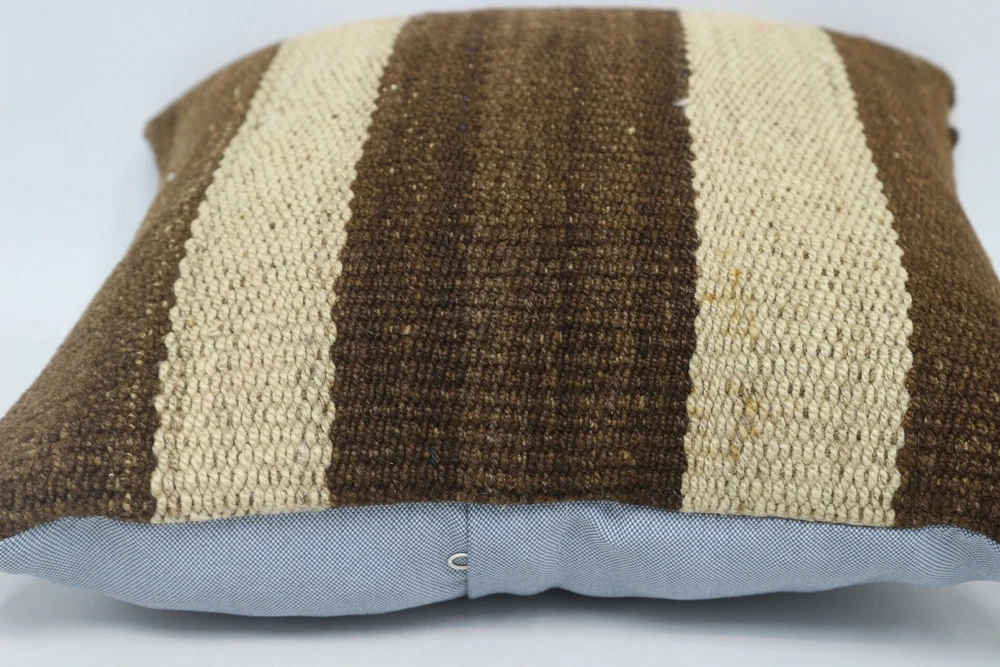 Throw Pillow Covers, Kilim Pillow Cover, 16"x16" Brown Kilim Pillow