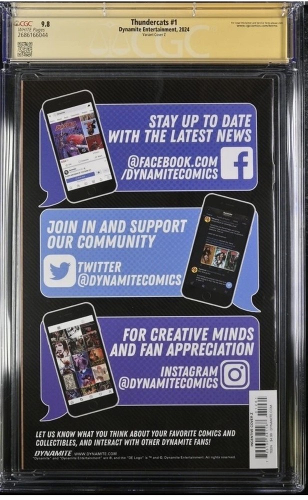 Thundercats #1 Variant Cover Z Dynamite Comics CGC Signature Series 9.8 - Yellow Label Art Comments Declan Shalvey story Drew Moss art Jae Lee cover Key Comments ""Virgin"" cover. Grader Notes Please see CGC website for graders notes. Signed By DREW MOSS & DECLAN SHALVEY