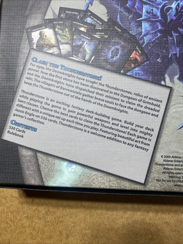 Title:ThunderstoneMin. Number of Players:2 playersGender:Boys & GirlsGame Title:ThunderstoneYear:2009Age Level:12-16 Years, 17 Years & UpBrand:AEGgtin13:9781594721274Type:CardsCharacter Family:ThunderstoneTheme:FantasyRecommended Age Range:12+UPC:9781594721274Game Type:Deck-building Game