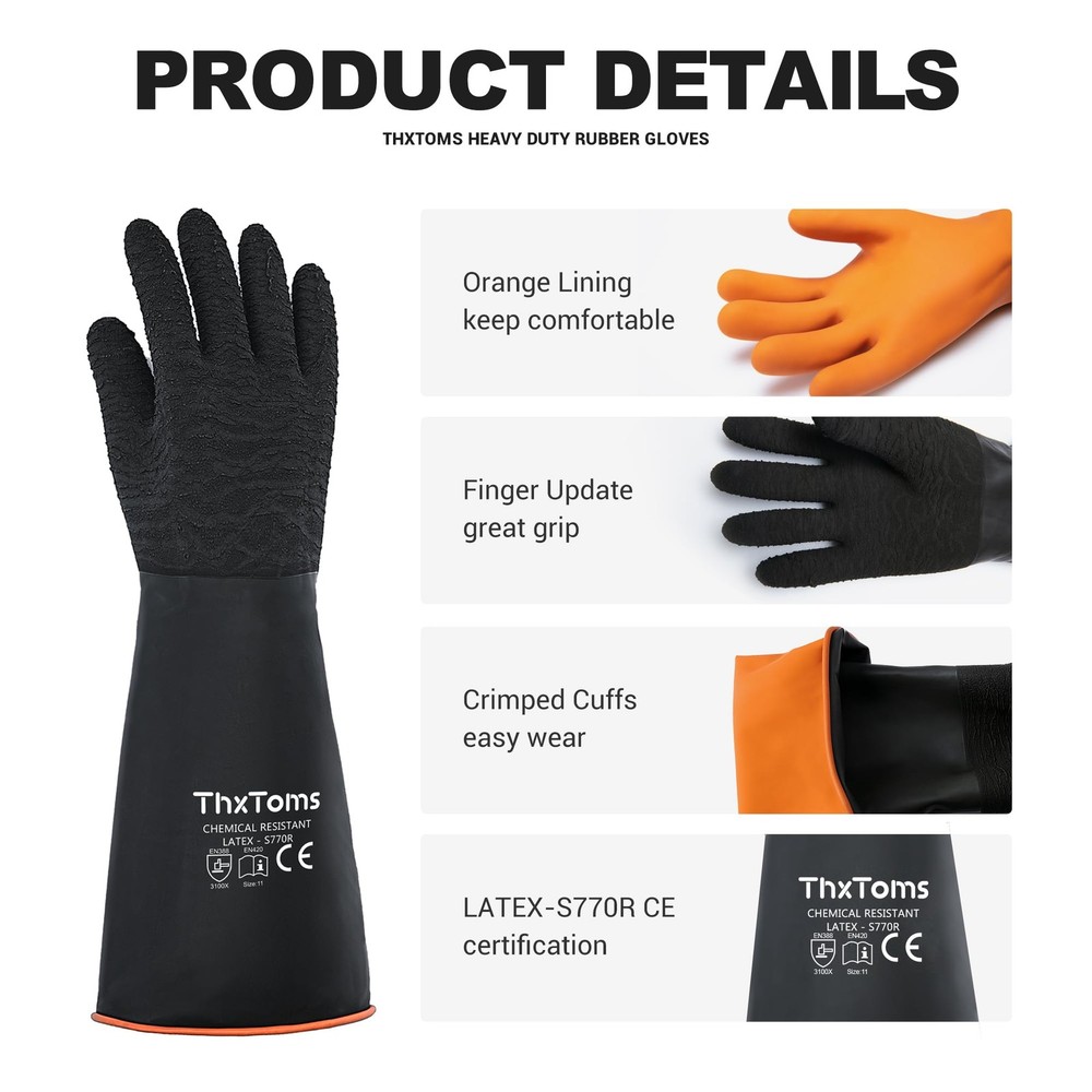😍Soft and Thick: Reinforced durability, ideal thickness and soft latex give a fantastic secure protection yet still tactile sensitive. 😍Chemical and Tear Resistance: High-grade natural latex possess a excellent chemical resistance and tear resistance. 😍Anti-Slip Design: Upgraded anti-slip texture provides better grip than standard gloves, making it more secure to grasp tools. Big Size Design: Our gloves are suitable for most hand (fits more perfect to the one wearing Large, Extra large or bigger size gloves at usual). It is comfortable for your hand's feeling with larger size. 😍Versatile Features: Reusable mechanic gloves,cleaning gloves or gardening gloves used by housewife, mechanics, agricultural, construction, researchers, for machine repair, yard work, aquarium, chemical processing, laboratory and more!