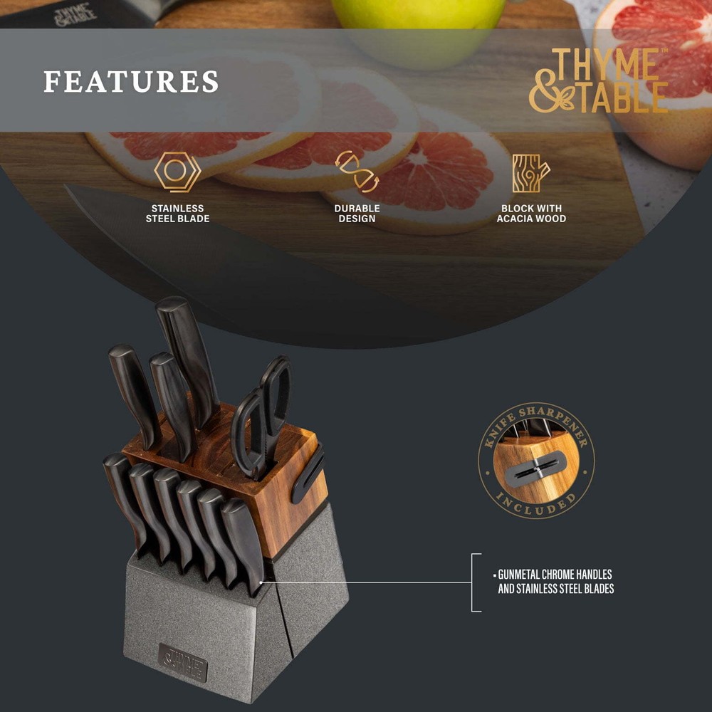 Thyme & Table 15-Piece Knife Block Set with Sharpener in Sleek Gunmetal
