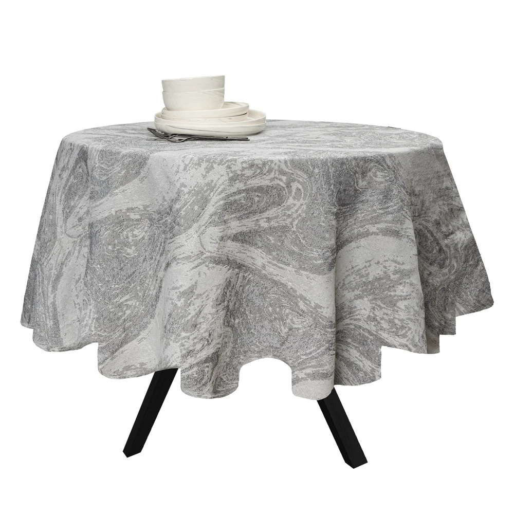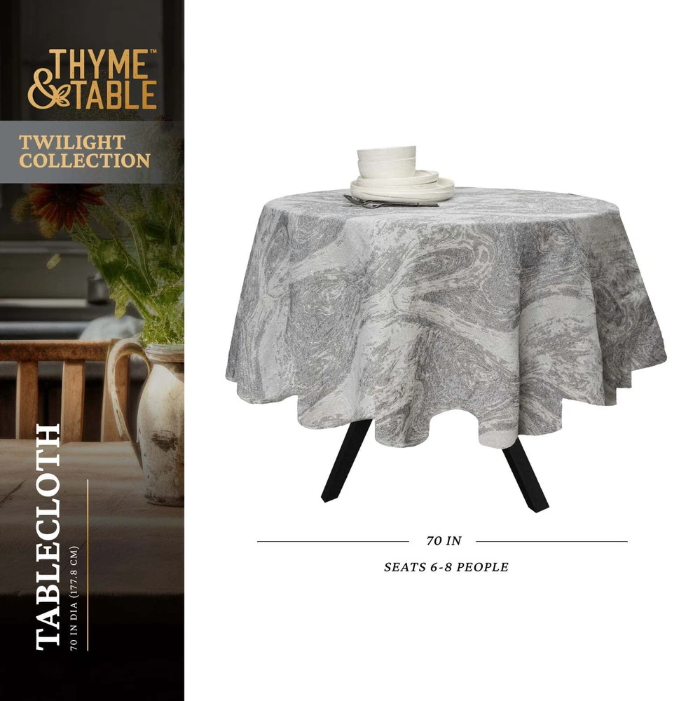 The Thyme & Table Gray Marble 70" Round Tablecloth adds a stylish and functional touch to your dining experience. Crafted from high-quality fabric, this tablecloth is perfect for protecting your table while enhancing your decor. The round shape comfortably seats 4 people, making it ideal for smaller meals or intimate gatherings. Seats 4 people: Great for small family meals or casual dining. Size: 70" diameter for round tables. Protects your table: Shields your table from spills, stains, and scratches. Enhances your decor: Adds a touch of luxury and sophistication to any setting. Stylish design: Gray marble pattern for a modern look. Thyme & Table 70" Round Tablecloth, Gray Marble