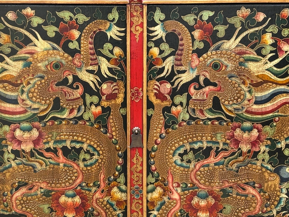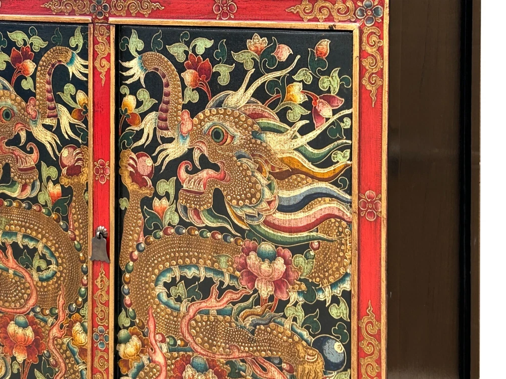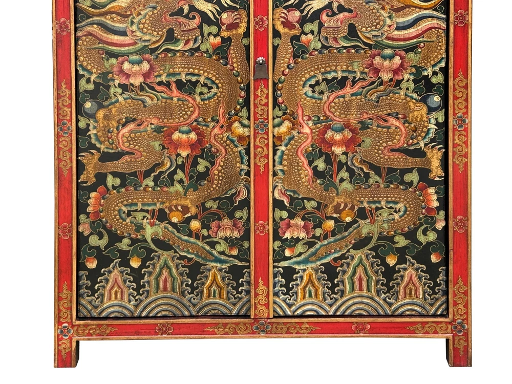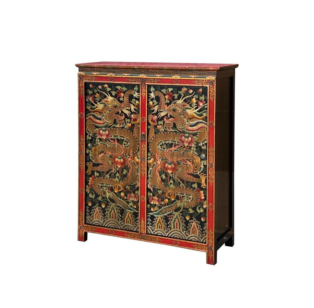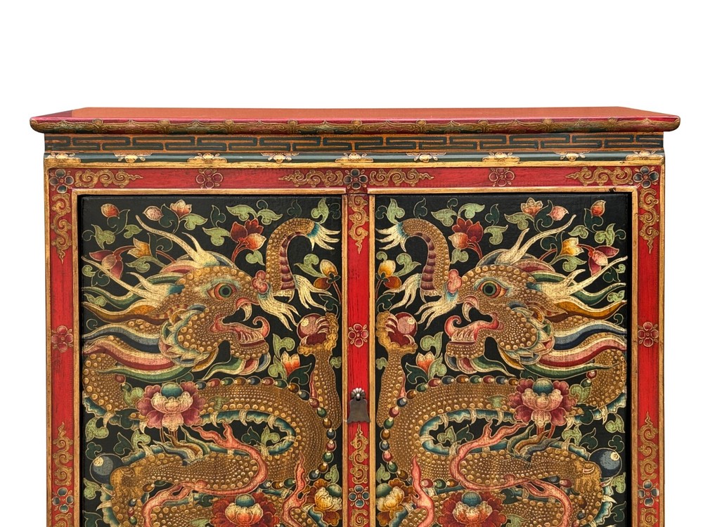 Tibetan Style Golden Double Dragons Graphic Credenza Storage Cabinet ws4618 DESCRIPTION Embrace the captivating artistry of this hand-painted Tibetan cabinet, a striking statement piece adorned with powerful golden dragons amidst intricate floral and auspicious motifs. This unique, handcrafted elmwood furniture not only offers practical storage but also infuses your living space with rich cultural symbolism and vibrant Eastern charm. The meticulous detailing and traditional techniques ensure a high-quality, durable piece that stands out, perfect for collectors of ethnic art and those seeking distinctive, spiritually inspired home décor. Elevate your interior with this exceptional cabinet, a testament to exquisite craftsmanship and timeless design. Dimensions: w47" x d18" x h60" Origin: China Material: Wood Condition: hand-made, distressed marks Work : Ship in one piece We offer a flat shipping fee of $445 for customers in the contiguous United States (48 states) for convenient curbside delivery. (Additional shipping costs will apply to customers in New York, Hawaii, Alaska, US Islands, Florida Keywest, or Canada, based on their specific location). The shipping cost includes insurance and handling charges for added protection.For customers in San Francisco or the Bay Area, we provide local delivery at a cost determined by the distance. You can find the exact cost by entering your zip code during checkout. Alternatively, you can pick up your order in-store with no extra shipping fee.If you need extra care and a white-glove experience, we offer a specialized service with a 4-8 week transit time, tailored to your destination. Contact us for a detailed quote on this service.Upon receiving your shipment, please carefully inspect the exterior packaging while the delivery personnel are present. Note any visible damage on the delivery paperwork, as carriers do not typically honor concealed damage claims. Your cooperation in documenting any visible damage is greatly appreciated Shipping Payment Return Contact Us Shipping Payment Return Contact Us US domestic continental buyer of 48 state pays listed shipping charge for curbside delivery. Customer from Hawaii, Alaska, US Island, Florida Key West and Canada pays extra Shipping cost. Insurance and handling charge are included in the shipping cost. Curbside - trucker drops off the pallet roadside of your location. We normally ship within 5 to 7 business days after payment, usually sooner. When your shipment is delivered, carefully inspect the outside of the packaging before the delivery personnel leave. It is important to clearly indicate if there is any visible damage to the packaging or items on the delivery paperwork. Carriers usually do not honor concealed damage claims so it is crucial to clearly indicate any visible damage to the packaging or items on the delivery paperwork. In-store pickup is highly welcomed if you are in San Francisco Bay Area (No charged) White Glove In-house Delivery service can be arranged - estimate an additional $500 -$700 based on the furniture size and volume. The Shipping company needs to accumulate shipments to move from coast to coast, so please understand the transit time is about 6 - 8 weeks. For customer who are looking to buy multiple items, we can do combine shipping - several items on the same pallet or small item inside the largest items as long as it can fit in. Global shipping is available, please contact us. We accept Paypal and all major credit card (Visa, Master, American Express and Discover) For internatinal customer, the easiest way is to pay by Paypal, we will only ship to Paypal comfimed address. - In the event that you would like to return your purchase, we allow returns that are processed within the defined return date (the return date is to be found in the return policy/shipping and handling section) - Please contact us for a return authorization and the return shipping address - We advise you to use a reputable carrier service when returning your goods. Please pack all returns appropriately. - Buyer may be responsible for round trip shipping. Damage Claim: For Curbside trucking shipment, please check the product is in good condition before you sign the release paper and accept the shipment. Report to the driver and write a note on the shipping document if there is any damage. Take photos for the record. We are not responsible for any conceded damage reported afterward. Customer is responsible to report any damage as soon as possible after receiving the item, All packing material should be kept for damage claim. We will not responsible for any damage cost if damage claim cannot be filed to the insurance company due to customer mistake " did not keep the original packaging material and box" If you have any question, please contact us via ebay. We usually respond within 10 min during office hour. Monday ~ Sunday (7days 10.00 am till 6.00 pm). See our other items Embrace the captivating artistry of this hand-painted Tibetan cabinet, a striking statement piece adorned with powerful golden dragons amidst intricate floral and auspicious motifs. This unique, handcrafted elmwood furniture not only offers practical storage but also infuses your living space with rich cultural symbolism and vibrant Eastern charm. The meticulous detailing and traditional techniques ensure a high-quality, durable piece that stands out, perfect for collectors of ethnic art and those seeking distinctive, spiritually inspired home décor. Elevate your interior with this exceptional cabinet, a testament to exquisite craftsmanship and timeless design. Dimensions: w47" x d18" x h60" Origin: China Material: Wood Condition: hand-made, distressed marks Work : Ship in one piece We offer a flat shipping fee of $445 for customers in the contiguous United States (48 states) for convenient curbside delivery. (Additional shipping costs will apply to customers in New York, Hawaii, Alaska, US Islands, Florida Keywest, or Canada, based on the