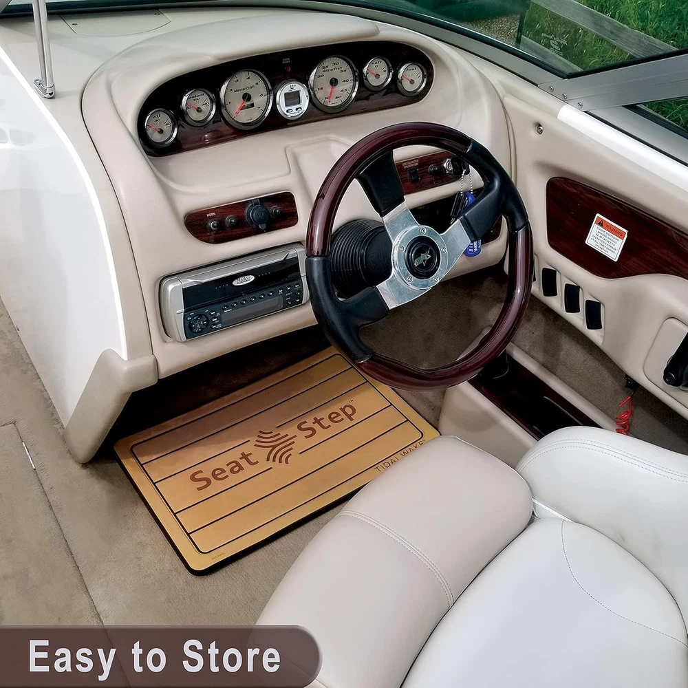 Tidal Wake Seat Step Non-Slip Marine Mat– Protects Boat Seats & Gray/Navy Description Features: PROTECT YOUR BOAT SEAT CUSHIONS – Prevent rips, grime, tears in the seams and worn spots - Seat Step is your ultimate boat seat protector, preventing dirt, wear & tear on your vinyl upholstery. Works great on camper and RV seats too! STOP RIPS BEFORE THEY START – Seat Step's engineered anti-flex core spreads out the weight & relieves stress protecting your vinyl upholstery seat covers from stretching out, rips and dirt. Prevents unsighly tears in cushion seams. It's a smart investment, strong, and built to save your boat seats! PORTABLE & VERSATILE – Move it from seat to seat, boat to boat. Use it as a helm mat while underway or on existing decks as a welcome mat. Its style and colors fit right in with your marine carpet, sea deck, or hydroturf decking design. Heavy Duty, effective, and easy to use. PATENT PENDING. Available in 7 Marine-Deco Colors SAVE MONEY ON REPAIRS – Stepping on soft cushions puts stress on the fabric and seams. Replacing seat cushions is expensive—and matching that original fabric? Good luck. With Seat Step, you get an affordable way to protect your investment while welcoming your guests in style! IT FLOATS! – Store it on the floor as a helm mat when not in use—it’s weighted to stay put, but if it falls overboard, no worries! This non-slip EVA dek-style mat floats. Product Details: Brand: Tidal Wake Color: Gray/Navy Orientation: Front Material: Reinforced EVA Vehicle Service Type: Boat Fit Type: Universal Fit Automotive Fit Type: Universal Fit Manufacturer: McNaughton Inc. Model: 22734 Item Weight: 3.04 pounds Package Dimensions: 22 x 14 x 1 inches Item model number: 22734 Exterior: Polished Manufacturer Part Number: 22734 Brand: Tidal Wake Color: Gray/Navy Orientation: Front Material: Reinforced EVA Vehicle Service Type: Boat Handling We will ship all orders within 1 business day of payment. Delivery We Do Not Ship Outside of the Continental US. Return Policy All items qualify for returns within 30 days of receipt. Buyer is responsible for return shipping on any item that is not damaged. Feedback We take our reputation seriously, we buy and sell online, so we understand the value of trust. If you are unsatisfied with your order, please contact us and we will work with you to resolve it to your satisfaction.