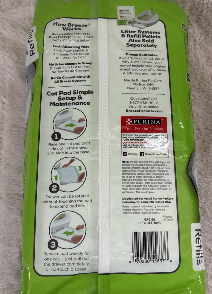 Keep your cat's litter box fresh and clean with these Tidy Cats Breeze Cat Pads. These pads are specially designed to absorb urine and neutralize odors, ensuring that your cat's litter box stays clean and odor-free. Each pack contains 10 refills, making it easy to keep your cat's litter box fresh and clean for weeks to come. These pads are compatible with the Purina Tidy Cats Breeze litter box, and are made in Japan using high-quality materials. Give your cat the gift of a clean and fresh litter box today with these Tidy Cats Breeze Cat Pads!