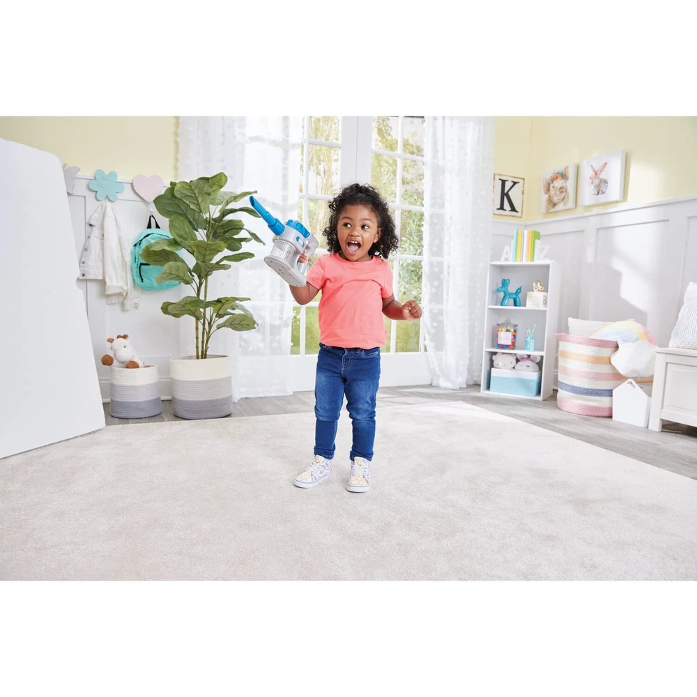 Tidy Vacuum Duo from is a 2-in-1 stick and handheld cordless toy vacuum cleaner with sleek design and professional appearance. Use the upright stick vacuum cleaner for classic pretend play! Adjusts to varying height with 18" and 9" stick attachments. For handheld play, remove stick attachments and easily twist on nozzle and tool attachment. Press the button to engage realistic suction to pick up "dirt"! Watch "dirt" swirl in the internal chamber. Includes one package of foam "dirt" for pretend play! Requires 3 "AA" batteries, included. JUST LIKE THE REAL ONE: 2-in-1 stick and handheld cordless toy vacuum cleaner with sleek design and professional appearance. HEIGHT ADJUSTABLE: Use the upright stick vacuum cleaner for classic vacuum play! Adjusts to varying height with 18" and 9" stick attachments. MULTIPLE PLAY OPTIONS: For handheld play, remove stick attachments and easily twist on nozzle and tool attachment. REALISTIC ACTION: Press the button to engage realistic suction to pick up "dirt"! Watch "dirt" swirl in the internal chamber. Includes one package of foam "dirt" for pretend play! PRODUCT SPECIFICATIONS: Package contains 2-in-1 Tidy Vacuum Duo. Requires 3 "AA" batteries, included.