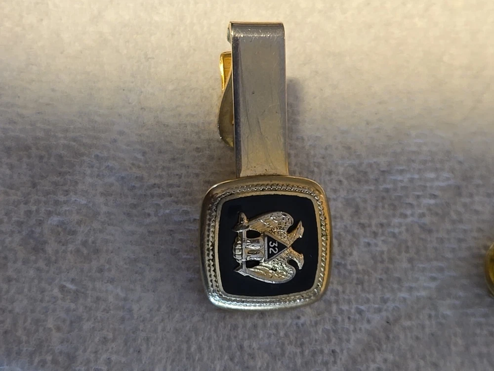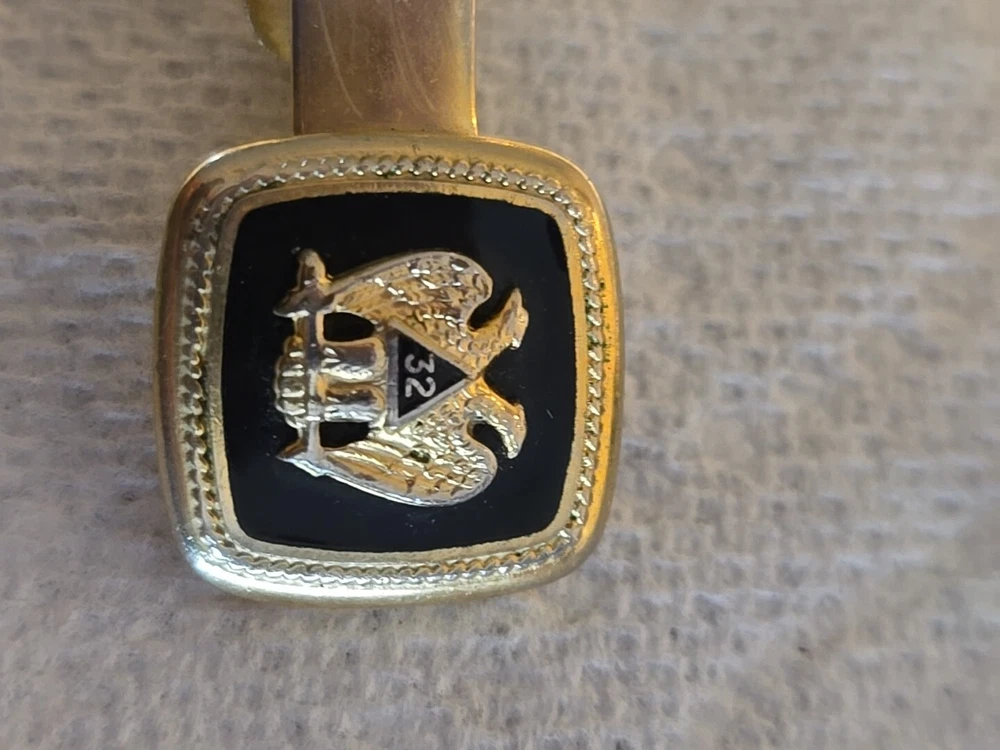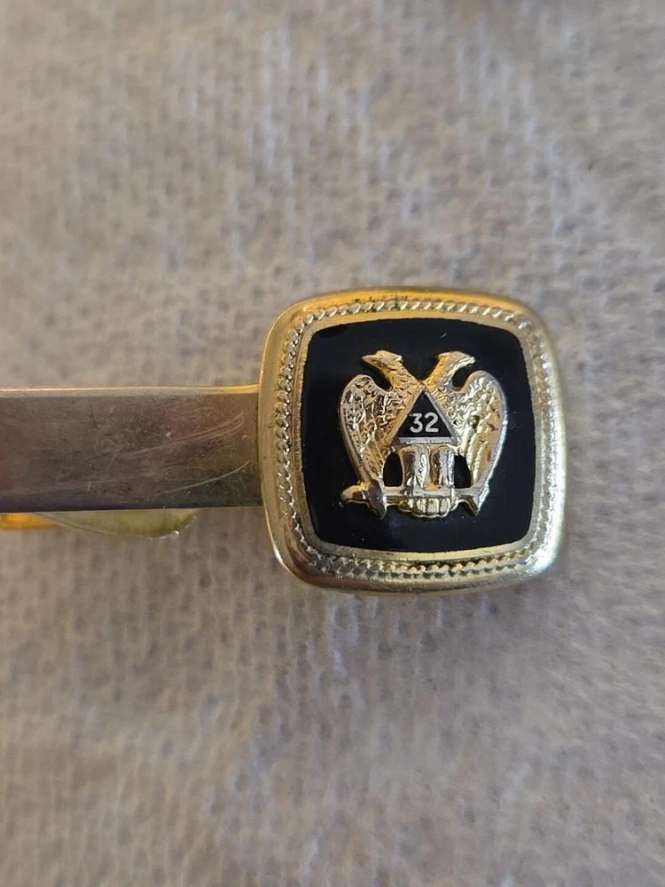 Tie Clip Masonic 32nd Degree Double Eagle Gold Men Formal Wear VINTAGE