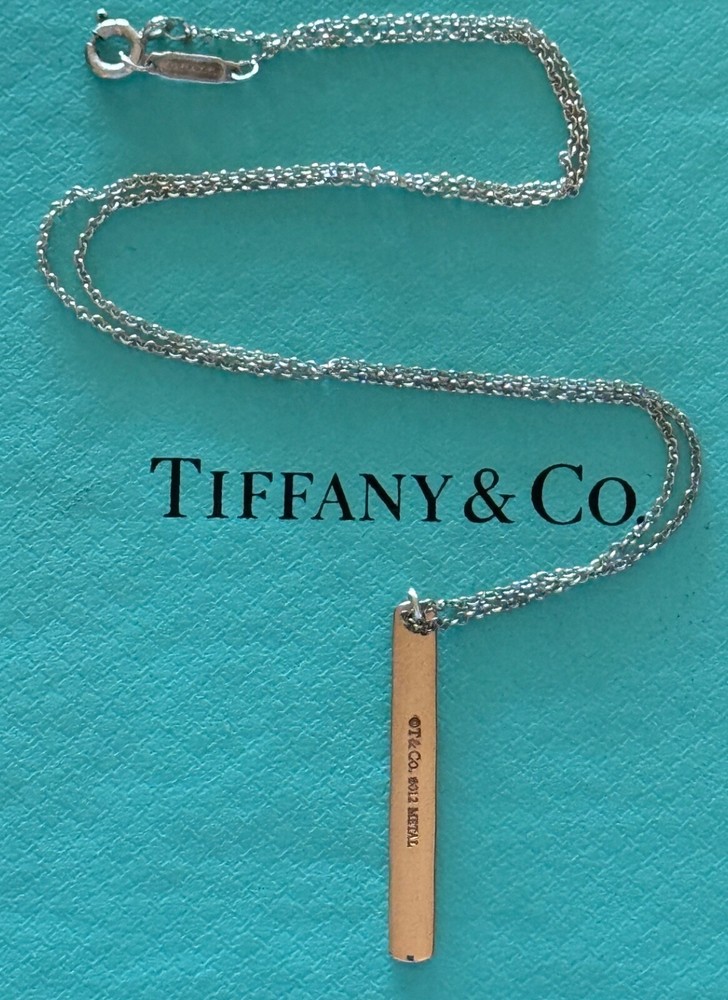 Tiffany & Co. 1837 Necklace Sterling Silver 925 & Rubedo Metal 1837 Bar Pendant. Necklace Measures approx. 16" No box or pouch. All Our Tiffany & Co. Items are Authentic.