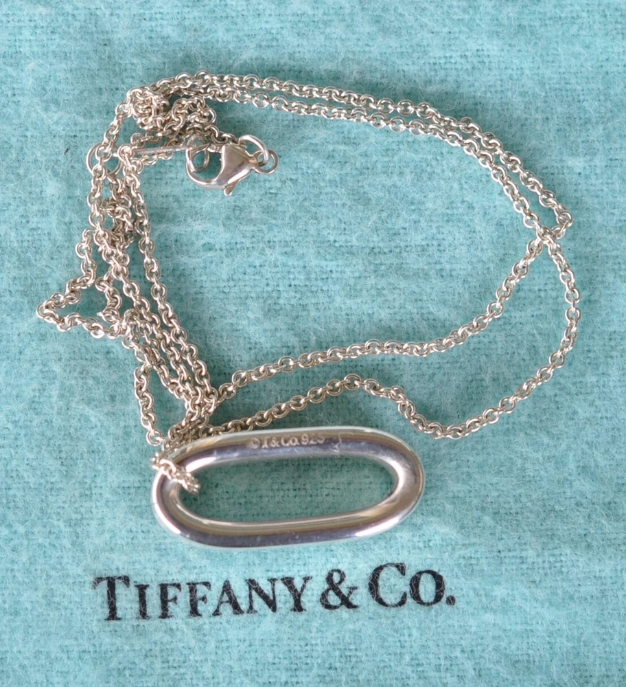 Tiffany & Co 1837 Oval Loop Ring Pendant & Necklace 18" Sterling Silver 925
