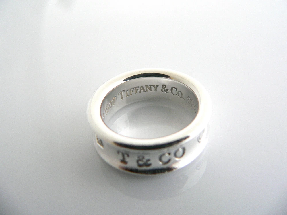 Overview: Offered for sale is a classic and gorgeous 1837 Tiffany and Co. Sterling Silver ring. Looks very feminine and pretty on the fingers, this ring is surely one that you will use over and over again. It is very versatile, and comfortable to wear. Easily sizable due to the way it is made. Great piece to start or add to your Tiffany collection. The ring is fully hallmarked and is guaranteed to be 100% authentic. Wonderful present for yourself or anyone you love! Will surely delight! Particulars: Size & Measurements: The ring is a size 5.25 Metal & Hallmarks: 1997 / Tiffany & Co. / 925 (inside the ring) 1837 / T & Co. / 925 (outside the ring) Solid 925 sterling silver Please check out my other unique and interesting Tiffany items on sale.