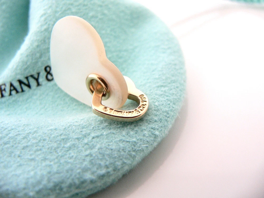 Overview: Everyone needs a signature Tiffany piece! Here is the perfect one just for you - and it's a very rare and special limited edition! Offered for sale is a wonderful Tiffany & Co. 18K Gold and Mother of Pearl Double Heart charm. Just add the charm to an existing necklace or bracelet and voila! - Instant Tiffany style :) T he piece is simple, elegant, and classic all rolled into one. Imagine it with your professional office attire ... Now imagine it with jeans or weekend wear ... Perfect! It is one of THE classic Tiffany pieces to start or add to your collection. No longer in production, you will be one of the few to own this piece - so grab it while you can! As always, the item is fully hallmarked and guaranteed to be 100% authentic. Wonderful present for yourself or anyone you love! Will surely delight! It will come with its Tiffany pouch as shown - perfect and ready for gifting! Particulars: Size & Measurements: The charm is 0.75 inches at its widest ends. Metal & Hallmarks: Tiffany & Co. / 750 Please check out my other unique and interesting Tiffany items on sale.