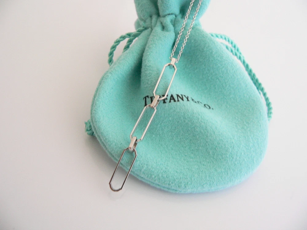 Overview: Looking for a super elegant and yet classic piece that will last a lifetime? Here it is! Offered for sale is a gorgeous Tiffany & Co. 18K White Gold "Paper Clip" / Oval link necklace. Great piece to wear with an open neckline shirt or dress or a dark turtleneck come winter time (but let's not think of this right now :))! The piece is almost like wearing a work of art on your neck - feminine, cosmopolitan, and very alluring. It is a wonderful necklace that fits a lifestyle on the go -- the necklace can be worn to almost any occasion! It is simple, elegant, and classic all rolled into one necklace. Imagine the piece with your professional office attire ... Now imagine it with jeans or weekend wear ... Perfect! It is a classic Tiffany piece to start or add to your collection. The piece is no longer in production and is perfect for the collector. It is in excellent condition. The necklace is fully hallmarked and guaranteed to be 100% authentic. Wonderful present for yourself or anyone you love! Will surely delight! It will come with its Tiffany pouch and box as shown! Perfect and ready for gifting! Particulars: Size & Measurements: The chain is 16.25 inches from end to end. The pendant is 2 inches. Metal & Hallmarks: Tiffany & Co. / 750 (on chain; pendant cannot be removed from chain) 18K white gold Please check out my other unique and interesting Tiffany items on sale.