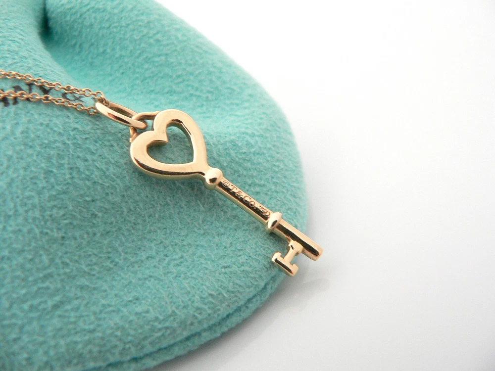Overview: Time to show off your awesome Tiffany necklace! Offered for sale is a classic and very pretty Tiffany and Co. 18K Gold Heart Key Charm Necklace. Wonderful necklace that fits a lifestyle on the go -- the necklace can be worn to almost any occasion! Hanging from its beautiful Tiffany & Co. 18K Gold curb chain is a super pretty 18K Heart Key charm. It is simple and yet looks extremely elegant. Imagine the piece with your professional office attire ... Now imagine it with jeans or weekend wear ... Perfect in every way! The item is very comfortable to wear, and is in excellent condition. A classic Tiffany piece to start or add to your collection. Both the pendant and chain are fully hallmarked and guaranteed to be 100% authentic. Wonderful present for yourself or anyone you love! Will surely delight! It will come with its Tiffany pouch as shown! Perfect and ready for gifting! Particulars: Size & Measurements: The necklace is 16.15 inches from end to end. The Heart Key Charm is 1.25 inches long - including the bail (Super pretty piece!) Metal and Hallmarks: T & Co. / 750 (on Heart Key Charm) Tiffany & Co. / 750 (on Chain Clasp) Solid 18K Yellow Gold Please check out my other unique and interesting Tiffany items on sale.