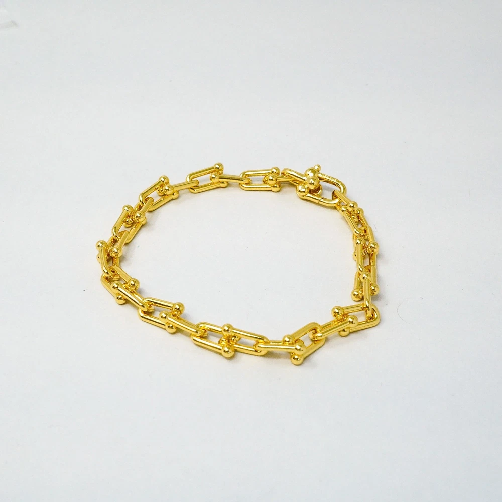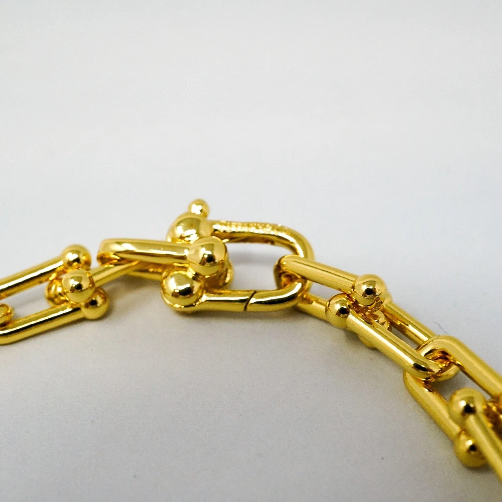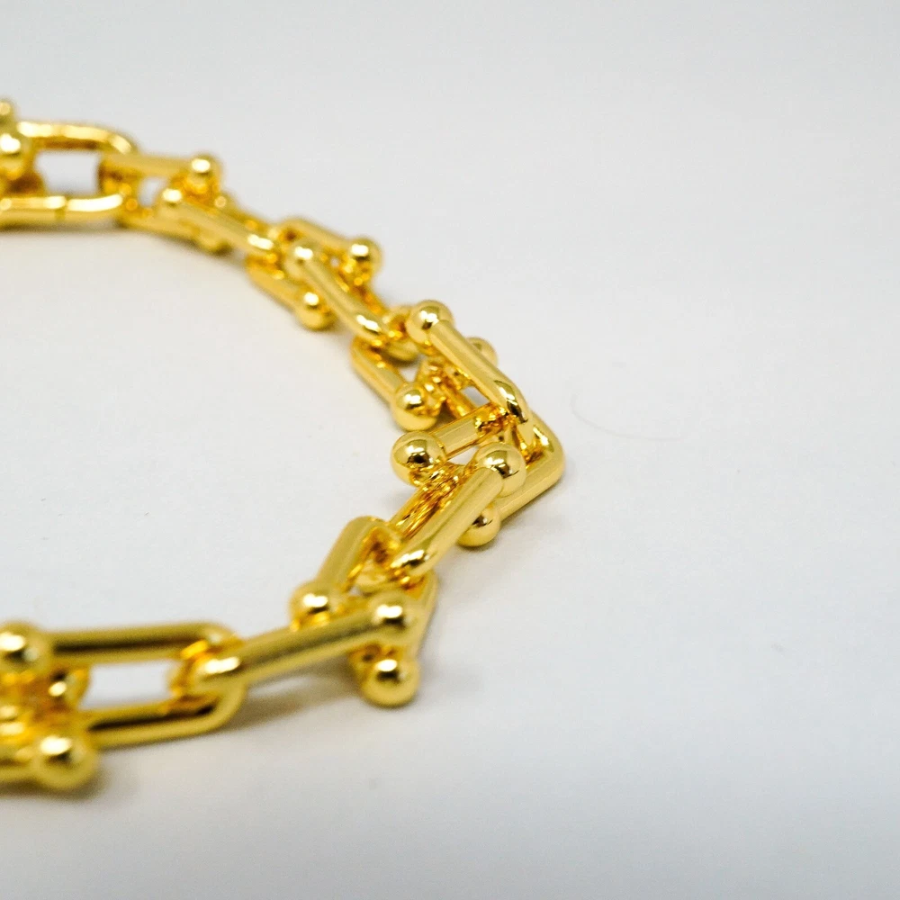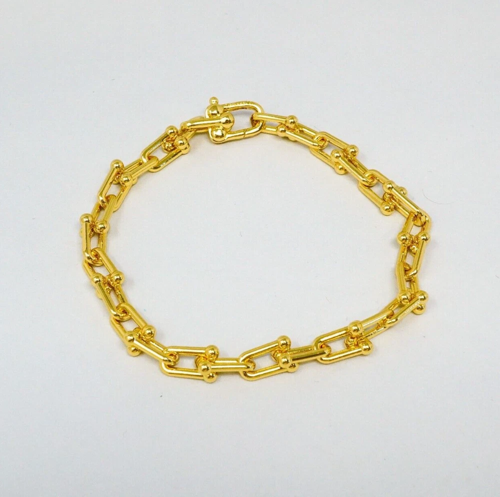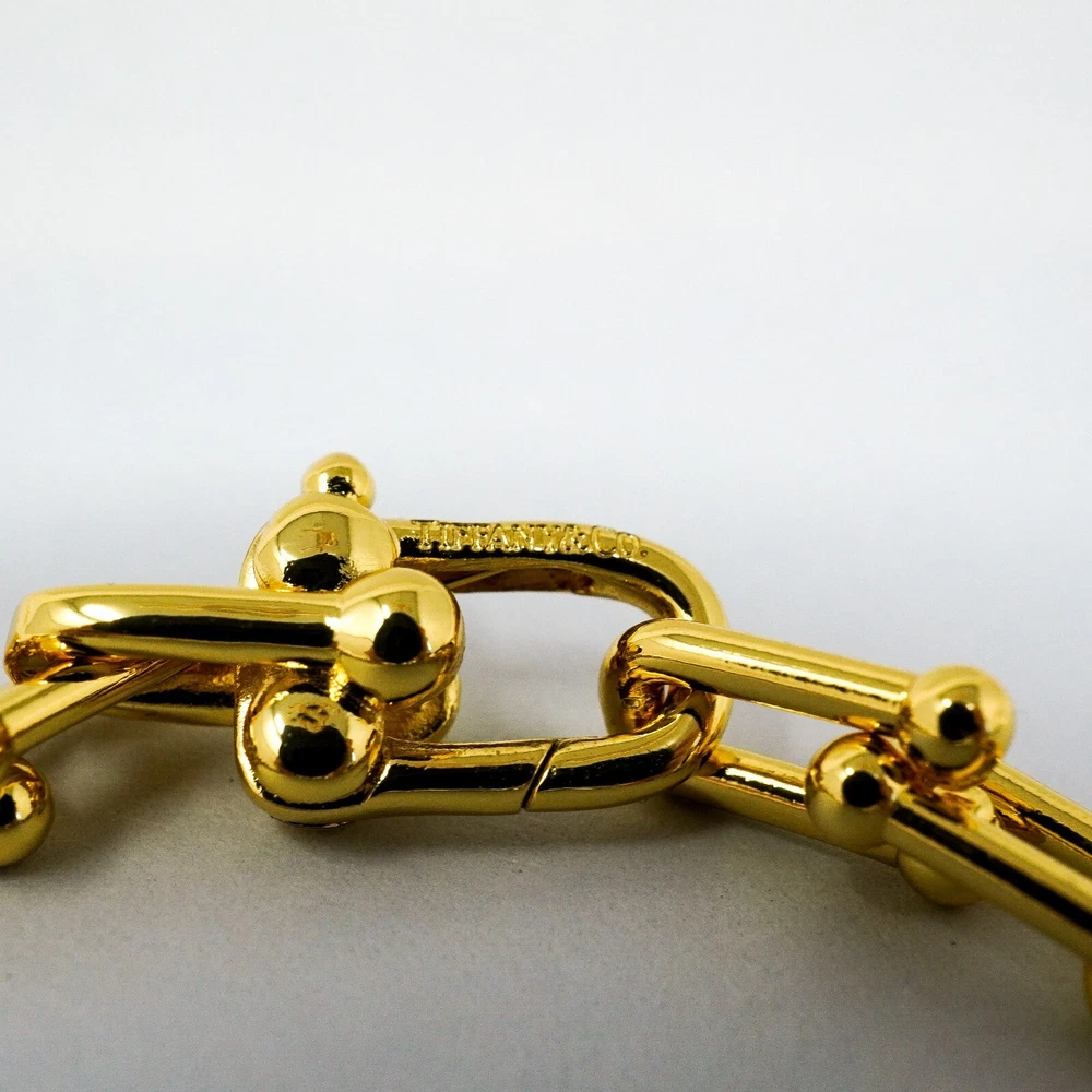 Tiffany & Co. 925 Gold Tone Hardware U Ball Link Bracelet 20cm With Gift Box Set