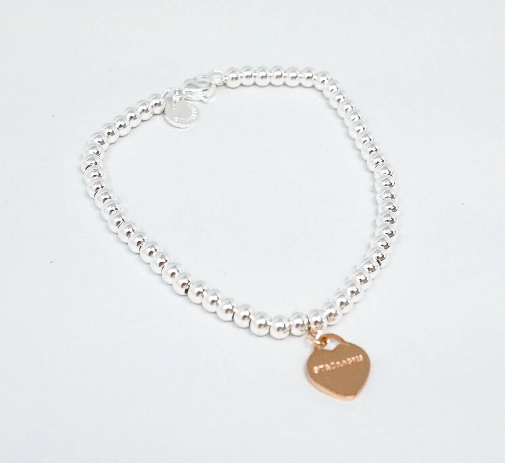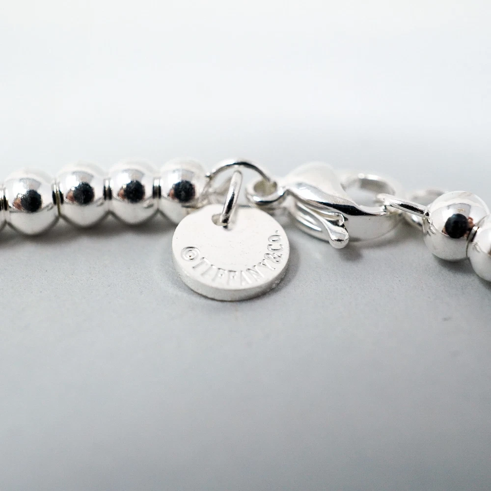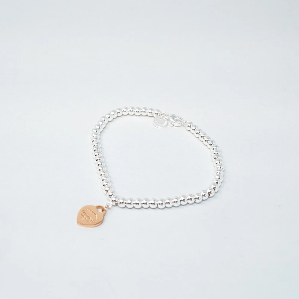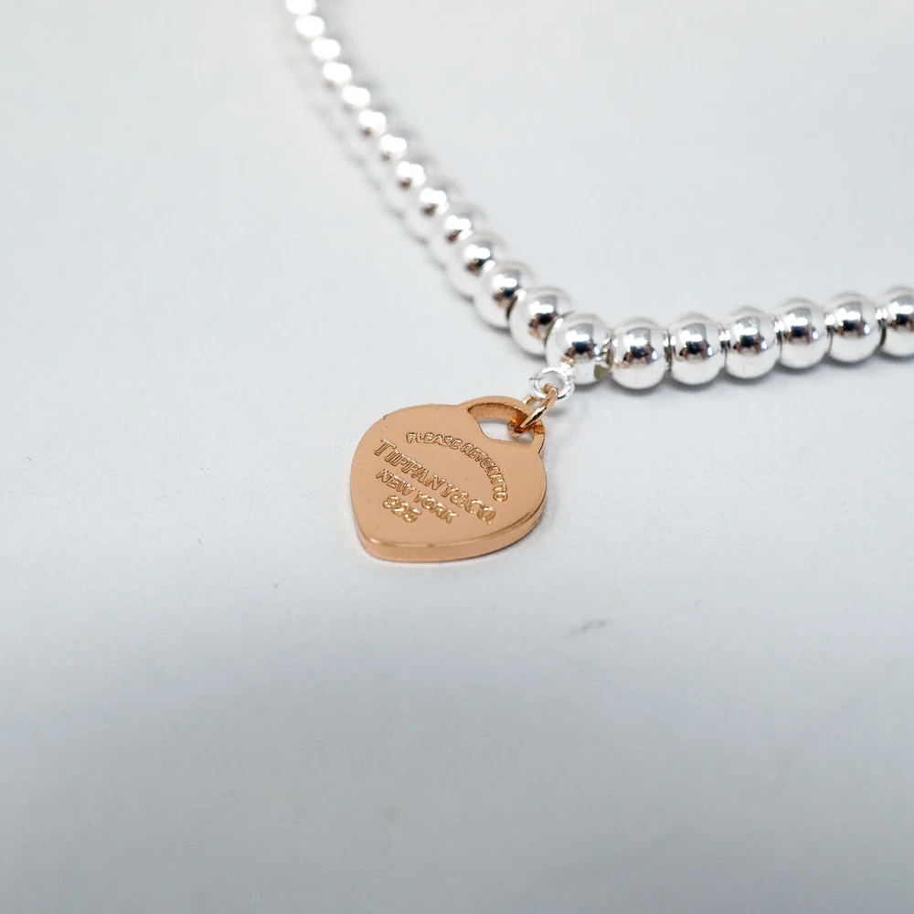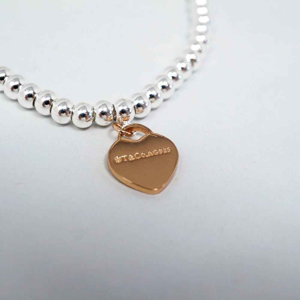 Tiffany & Co. 925 Silver Beaded Rose Heart Charm Bracelet 18cm With Gift Box Set