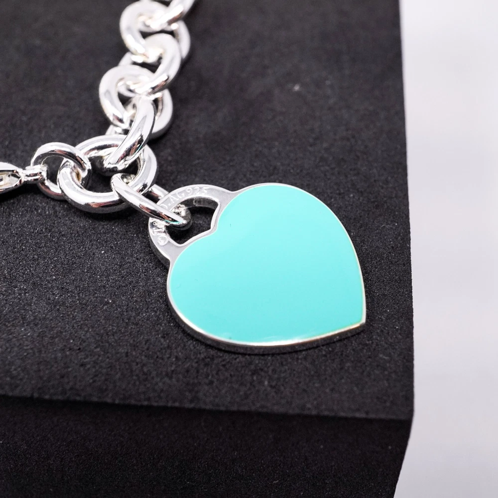 HomeTiffany & Co. 925 Silver, Blue Heart Tag Bracelet 20cm With Gift Box Set