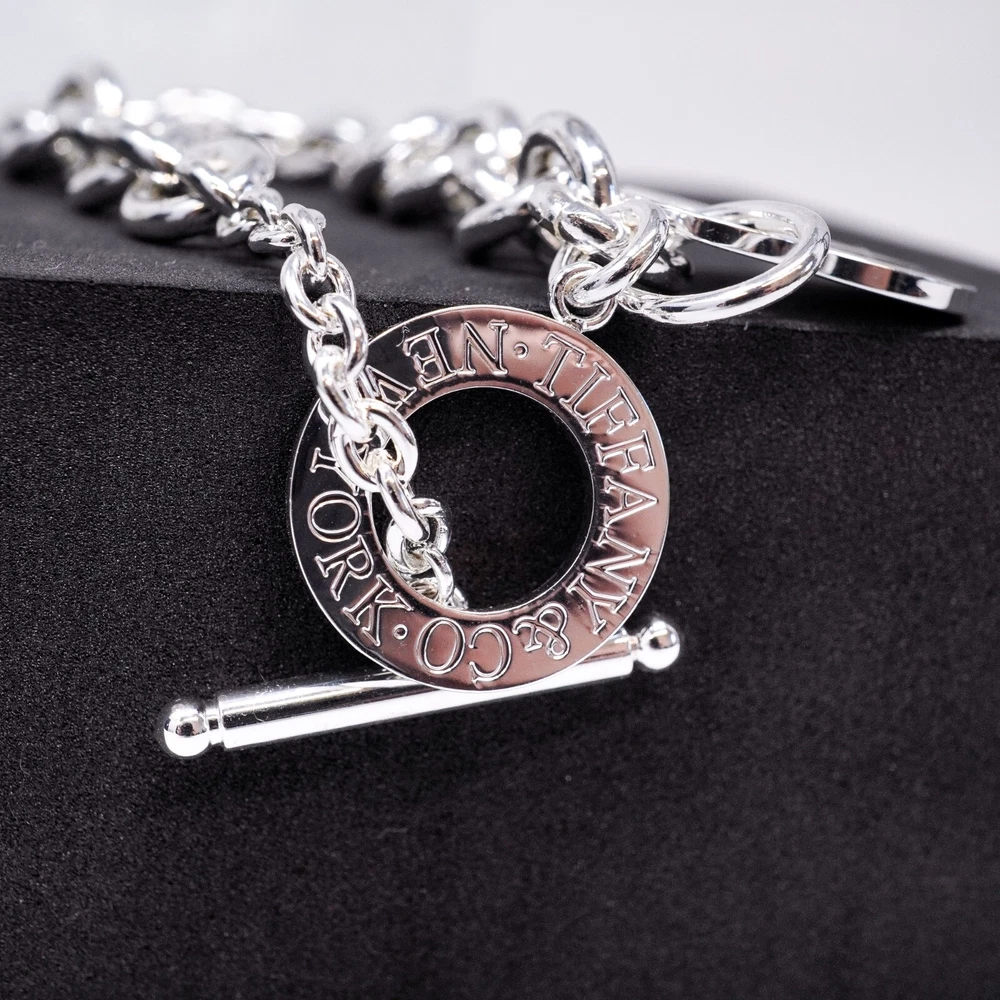 Tiffany & Co. 925 Silver Heart Tag Toggle Bracelet 20cm With Gift Box Set
