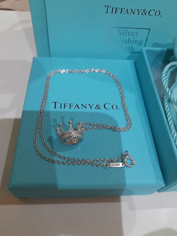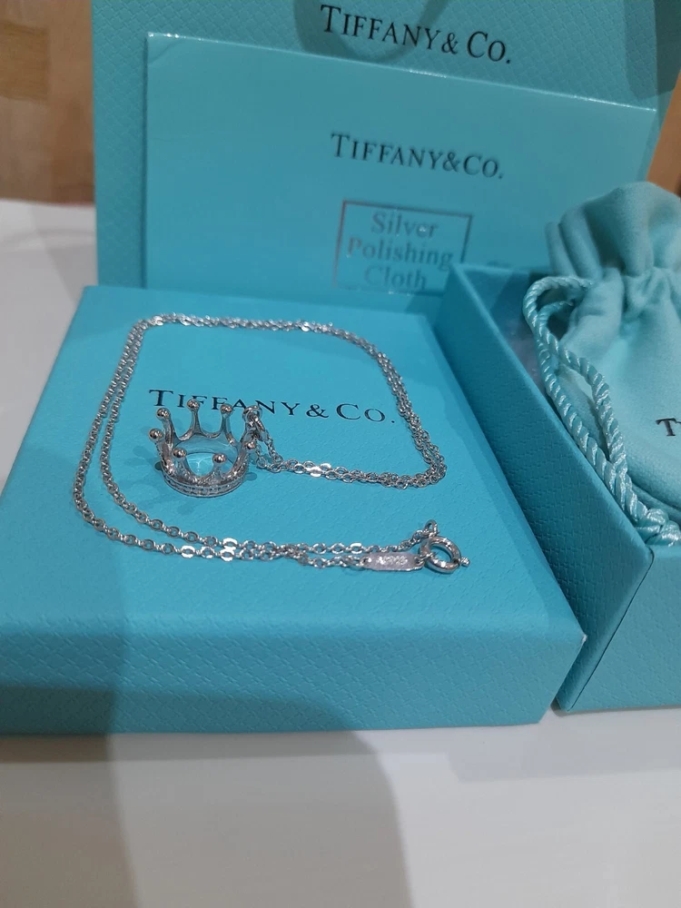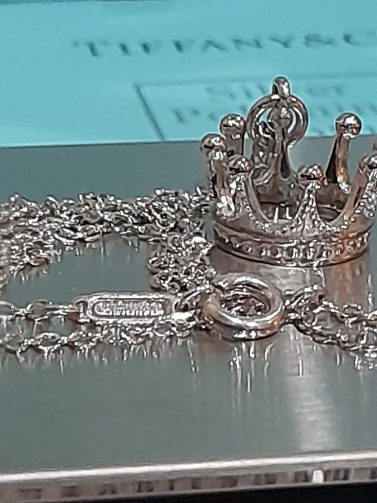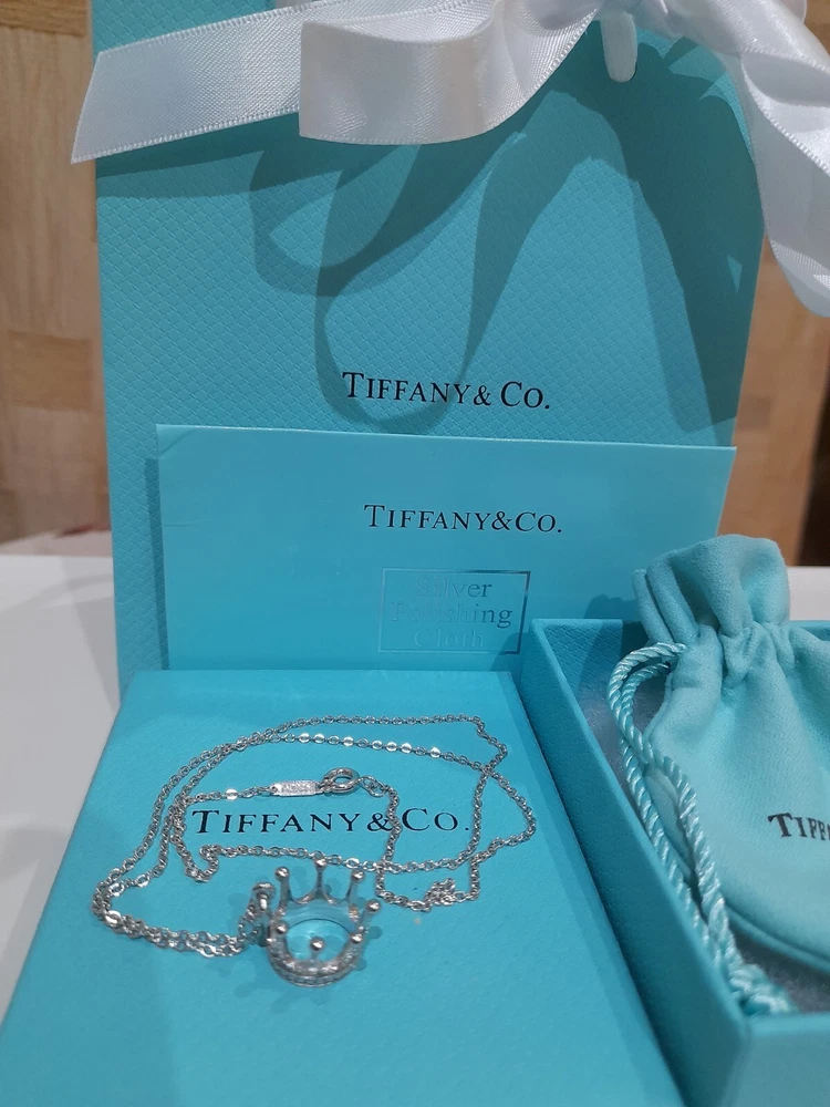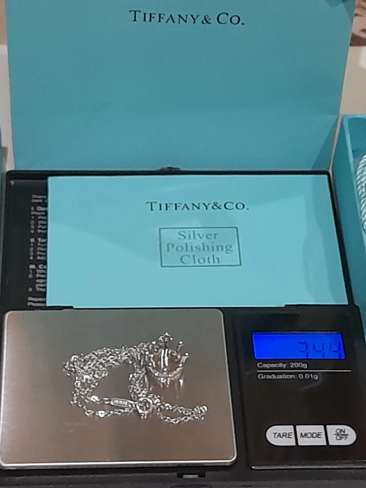 PLEASE NOTE: I will package and post this or any other Tiffany&Co. item listed for sale by Royal Mail special delivery 1-2 working days after purchase, so it will arrive on the following working day after postage around 1pm (UK) ππ Add a touch of regal charm to your jewellery collection with this stunning authentic Tiffany & Co. 925 Sterling Silver Crown Charm Pendant Necklace. This 20" necklace features an engraved Tiffany & Co. 925 Crown pendant, which is beautifully crafted with a spring ring closure. The oval link chain adds to the overall elegance of this piece, making it the perfect accessory for any special occasion, be it for an Anniversary, Birthday, Valentine's Day or Christmas π The necklace is hallmarked and signed by Tiffany & Co., ensuring its authenticity. With a total weight of 3.44 grams, this necklace is a statement piece that is sure to turn heads. The necklace is perfect for those who love beauty, art, love, and magic. It is a must-have for any jewellery enthusiast. Perfect for gifting or for treating yourself! ππβ€οΈπ Please note that this sale includes the Tiffany&Co. dust pouch, a box, a white ribbon, a sterling silver polishing cloth, and a gift bag as photographed π PLEASE NOTE : Some of this packaging has been added to the original packaging to make this better for gifting. Hence, it is described as new without tags according to Ebay's descriptors π The sale also includes free Royal Mail special delivery. Once purchased, this item will be carefully packaged and posted to you quickly, 1 -2 working days, via Royal Mail special delivery π Please see all the photographs of the item for sale as these form a part of this description and demonstrate all the details of the necklace, including it's excellent condition, measurements, and the weight of the item. This pendant necklace weighs 3.44 grams. The necklace is 20" long. Thank you for looking π Please see my other listings for sale as these include many other stunning authentic Tiffany&Co. items for sale, both new and preloved rare retired items π