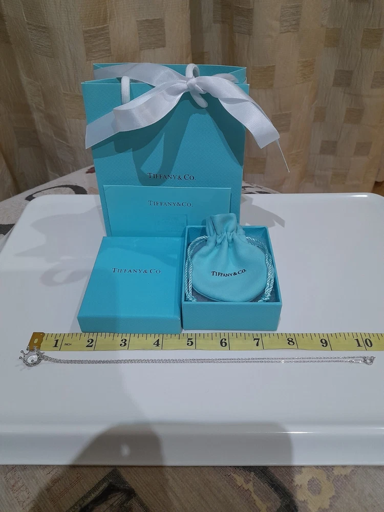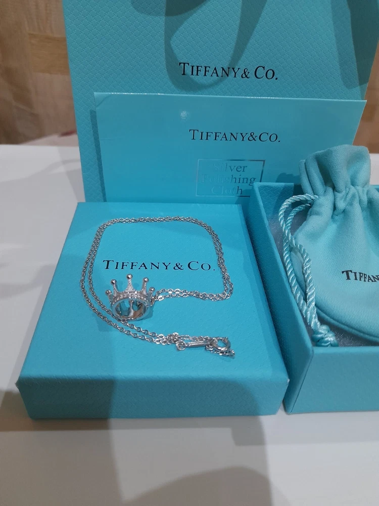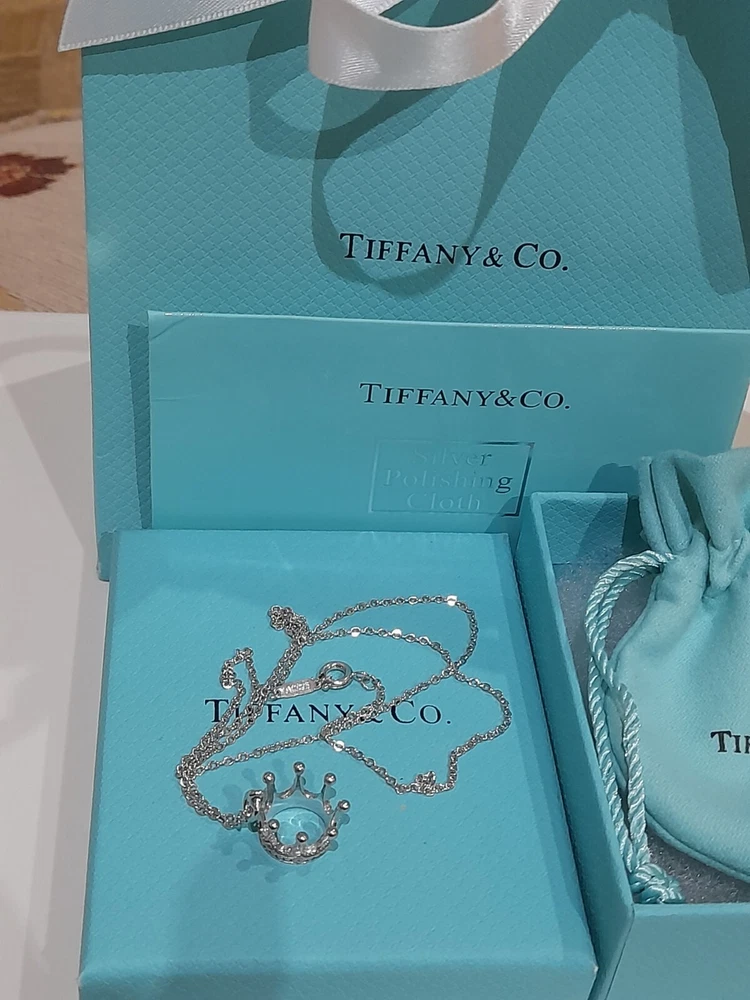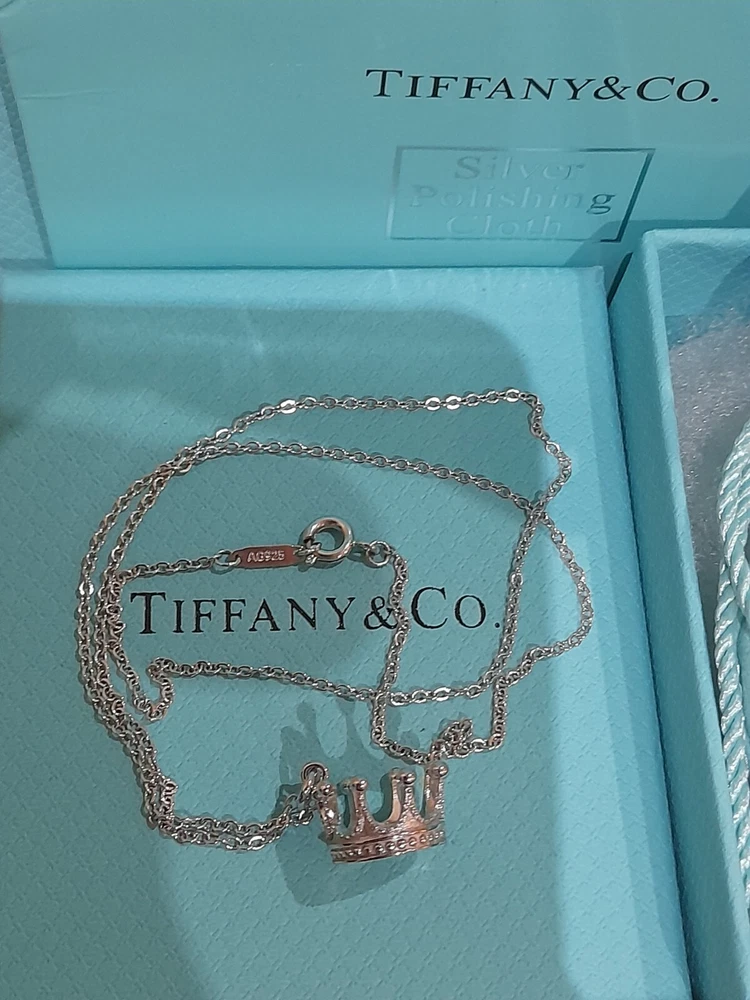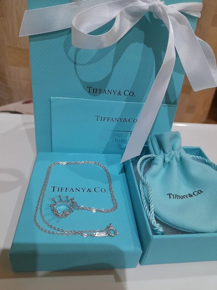 PLEASE NOTE: I will package and post this or any other Tiffany&Co. item listed for sale by Royal Mail special delivery 1-2 working days after purchase, so it will arrive on the following working day after postage around 1pm (UK) ππ Add a touch of regal charm to your jewellery collection with this stunning authentic Tiffany & Co. 925 Sterling Silver Crown Charm Pendant Necklace. This 20" necklace features an engraved Tiffany & Co. 925 Crown pendant, which is beautifully crafted with a spring ring closure. The oval link chain adds to the overall elegance of this piece, making it the perfect accessory for any special occasion, be it for an Anniversary, Birthday, Valentine's Day or Christmas π The necklace is hallmarked and signed by Tiffany & Co., ensuring its authenticity. With a total weight of 3.44 grams, this necklace is a statement piece that is sure to turn heads. The necklace is perfect for those who love beauty, art, love, and magic. It is a must-have for any jewellery enthusiast. Perfect for gifting or for treating yourself! ππβ€οΈπ Please note that this sale includes the Tiffany&Co. dust pouch, a box, a white ribbon, a sterling silver polishing cloth, and a gift bag as photographed π PLEASE NOTE : Some of this packaging has been added to the original packaging to make this better for gifting. Hence, it is described as new without tags according to Ebay's descriptors π The sale also includes free Royal Mail special delivery. Once purchased, this item will be carefully packaged and posted to you quickly, 1 -2 working days, via Royal Mail special delivery π Please see all the photographs of the item for sale as these form a part of this description and demonstrate all the details of the necklace, including it's excellent condition, measurements, and the weight of the item. This pendant necklace weighs 3.44 grams. The necklace is 20" long. Thank you for looking π Please see my other listings for sale as these include many other stunning authentic Tiffany&Co. items for sale, both new and preloved rare retired items π