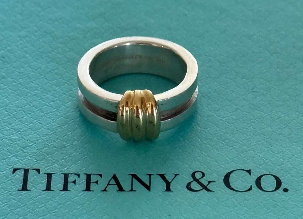 Tiffany & Co Atlas Groove Ring. Sterling Silver 925 & 18k gold . Size 5 US. No box or pouch. All Our Tiffany & Co. Items are Authentic.