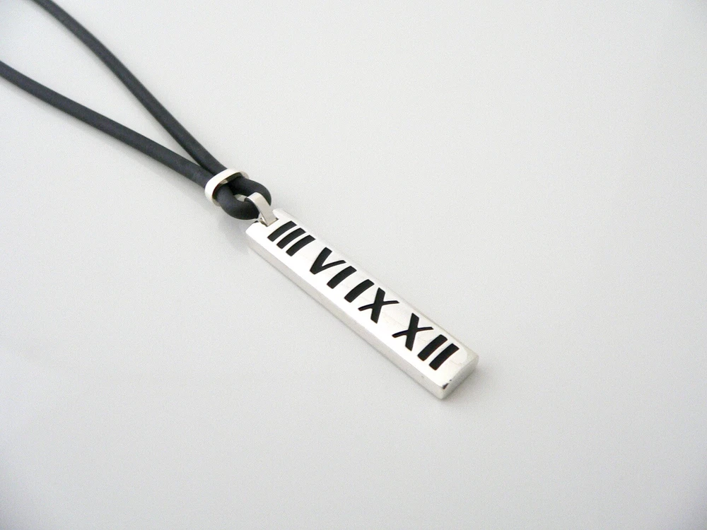 Overview: Offered for sale is a wonderful and very cool Tiffany & Co. Sterling Silver and Black Enamel Atlas Bar Surfer Necklace on a Black Rubber Cord. Definitely a Tiffany piece that you will get your money's value for. Hanging from its gorgeous black rubber cord is a beautiful Black Enamel Atlas bar charm. The necklace works perfectly with pretty much any attire your put on, AND is an awesome statement piece. It is the perfect necklace that fits a lifestyle on the go -- it can be worn to pretty much any occasion! It is simple, elegant, and classic all rolled into one necklace. Imagine wearing the necklace with your office attire... now imagine it with jeans or weekend wear ... Perfect anytime! No longer in production, it is perfect for the collector. It is a perfect Tiffany piece to start or add to your collection. As always, the item is hallmarked and is guaranteed to be 100% authentic. Wonderful present for yourself or anyone you love! Will surely delight! Particulars: Size & Measurements: The Rubber Cord is 16 inches from end to end. The Atlas bar charm is 1.6 inches long. Metal & Hallmarks: 2003 / Atlas / Tiffany & Co. / 925 Solid 925 sterling silver Please check out my other unique and interesting Tiffany items on sale.