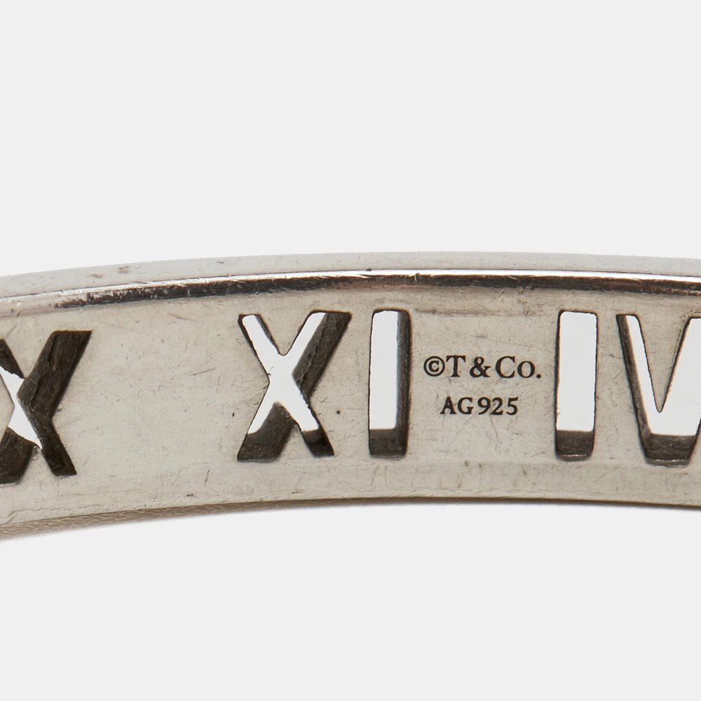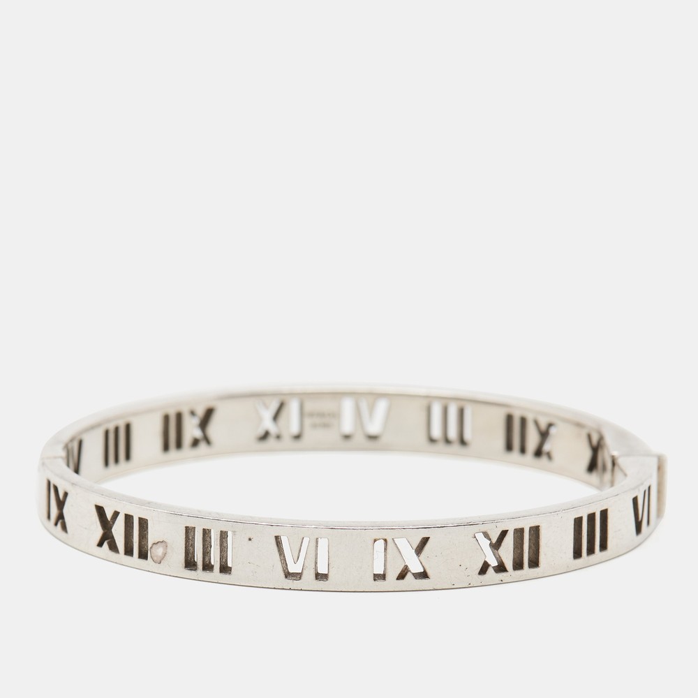 This Tiffany and Co. Atlas bangle is crafted from sterling silver and designed with the iconic Roman numeral motif. Perfect for stacking or wearing solo, this piece epitomizes timeless elegance and meticulous craftsmanship.Certified by The Luxury Closet - This item has gone through a detailed authentication process overseen by our experts. We offer a lifetime guarantee of authenticity on all our items. Import duties, taxes and charges are not included in the item price. These charges are the buyers responsibility. Please check with your country’s customs office to determine what these additional cost will be prior to buying. Our eBay Store About Us Contact Us Add to Favorite Sellers Tiffany & Co. Atlas Sterling Silver Bangle Bracelet $465.3 This Tiffany and Co. Atlas bangle is crafted from sterling silver and designed with the iconic Roman numeral motif. Perfect for stacking or wearing solo, this piece epitomizes timeless elegance and meticulous craftsmanship. Product Details Brand Color Silver Dimensions Width: 0.63 cm Material Size Outsole Width Outsole Length Heel Height Includes Original Box, Original Case Certified by The Luxury Closet This item has gone through a detailed authentication process overseen by our experts. We offer a lifetime guarantee of authenticity on all our items. How We Check The in-house team of experts at The Luxury Closet is highly trained to verify the authenticity and the condition of the luxury products. They ensure that only 100% authentic items are put on sale.The evaluation process is unique with its own mix of assessment criteria and differs according to the category. Each item is evaluated based on the following combination of hallmarks, hardware, stitching, symmetry, material, craftsmanship, stamping, codes, hologram stickers, and packaging. Our authenticators also check if the items have been modified or amended (e.g., aftermarket diamonds, replaced batteries, repaired bags, etc.) International Buyers Import duties, taxes and charges are not included in the item price. These charges are the buyers responsibility. Please check with your country’s customs office to determine what these additional cost will be prior to buying.