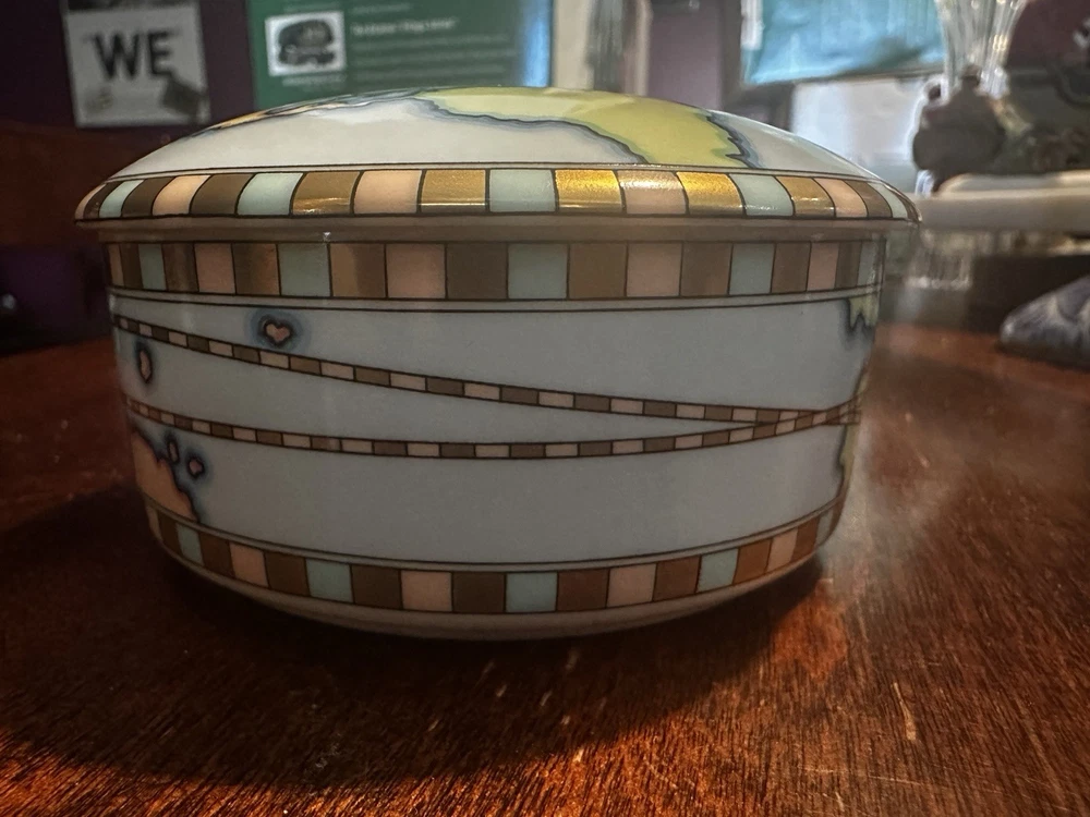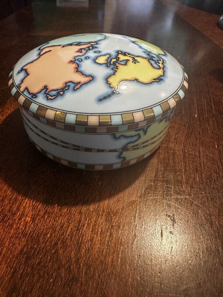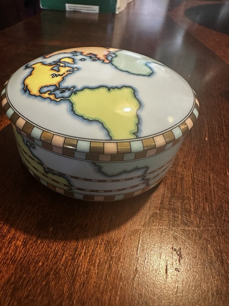 Item Width: 4" Occasion: All Occasions Time Period Manufactured: 2000-2009 Color: Blue Suitable For: Furniture Type: Trinket Box Room: Any Room Size: Medium Brand: Tiffany & Co. Original/Reproduction: Original Shape: Round Features: With Lid Item Length: 4 in Handmade: No Customized: No Number in Pack: 1 Pattern: World Map Year Manufactured: 1994 Subject: World map globe Finish: Glossy Item Height: 1.75" Material: Porcelain Engraved: No Style: Continental Department: Adults Care Instructions: Clean with Damp Cloth