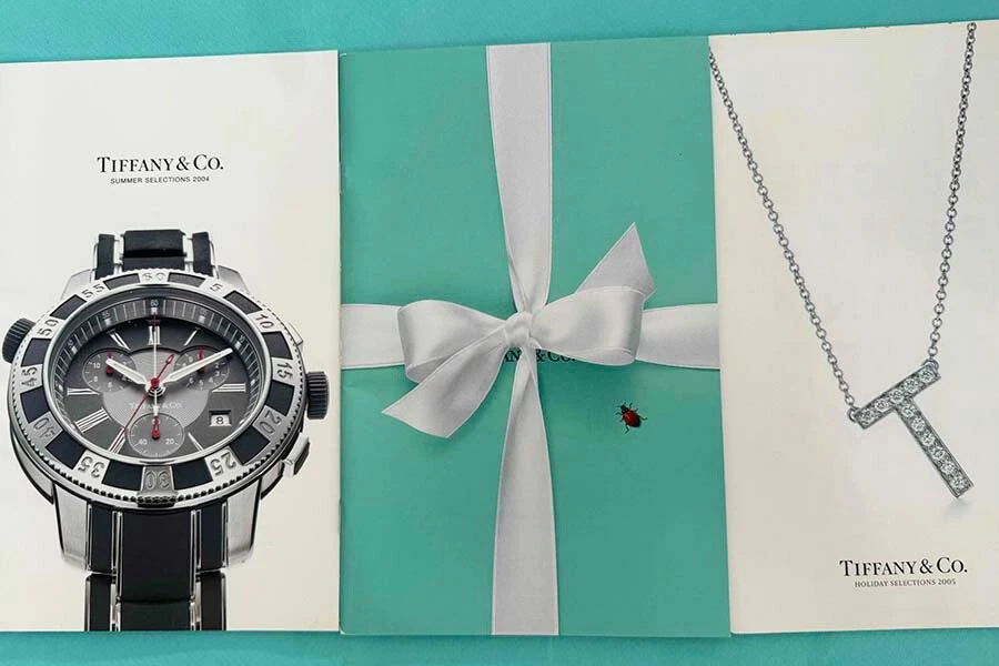 * LOT of 3 TIFFANY & Co. VINTAGE CATALOGS ... PHOTOS & PRODUCT INFORMATION ... 1. "HOLIDAY SELECTIONS 2005" ... 52 Pages. 2. "SUMMER SELECTIONS 2004" ... 51 Pages. 3. 'SUMMER SELECTIONS 2006" .... 52 Pages. Approx. 5 1/4" by 8 1/2" ... Stapled Spine. Semi-Gloss Covers. * Some Fine Jewelry and Home Products include PERETTI , SCHLUMBERGER , ATLAS , LIMOGE. BLACK SHOULDERS etc.... ** DIAMONDS, RUBIES, SAPPHIRES, EMERALDS, AMETHYST , GOLD, SILVER, PORCELAIN, CRYSTAL, SILVERWARE, CLOCKS, PERFUME, WATCHES TIFFANY MARK, PEARLS, BIRDs, MOON, LADYBUG, RAINBOW DROPS, NECKLACE, BUTTERFLY, CHARM BRACELETS DOGS, HORSES, Etc. Etc. *WONDERFUL ARRAY OF TIFFANY JEWELS AND DELIGHTs. * GREAT VINTAGE RESOURCE CATALOGS. *USED PRE-OWNED VERY GOOD CONDITION. : Some normal wear and aging. Mailing Labels blacked out.... A few spots, marks, aging tone. *Please see photos above as part of the description. (Colors may vary on photos from Catalogs) Ships via USPS mail, Carefully wrapped. No International Shipping. Ships in US only. THANK YOU! & ALOHA! PS: Listing some Other Catalogs ...