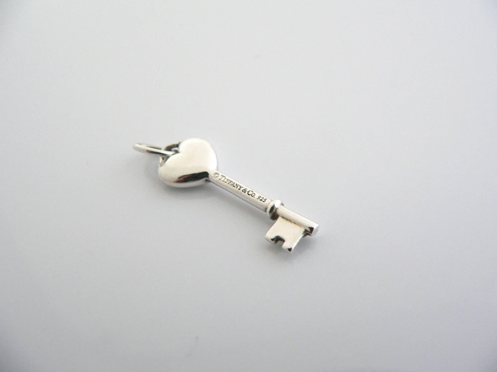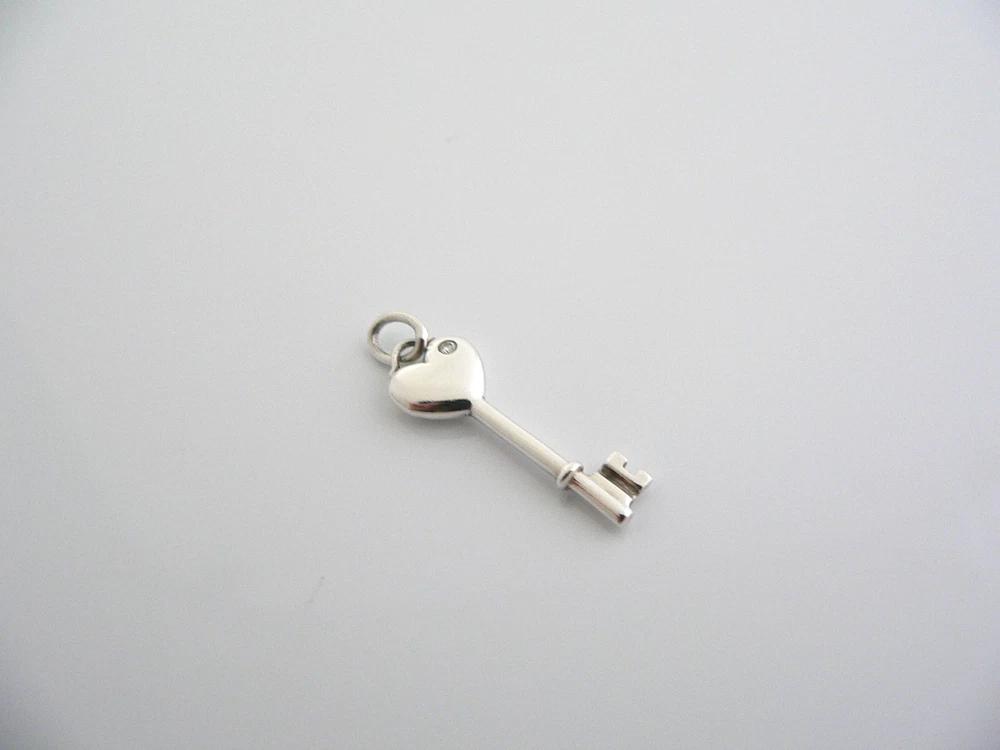 Overview: Offered for sale is a fantastic and very pretty Tiffany and Co. Sterling Silver Diamond Heart Key charm / pendant. Wonderful charm that fits a lifestyle on the go -- the piece can be worn to almost any occasion! Just add the Diamond Heart Key charm to an existing chain / silk cord / or bracelet and voila! Instant Tiffany style and elegance! :) It is classic Tiffany and yet looks extremely elegant. Perfect way to say "Here's the key to my heart :)" without ever having to say a word - believe me, she will know! :) Imagine the piece with your professional office attire ... Now imagine it with jeans or weekend wear ... Perfect in every way! The item is very comfortable to wear, and is in very good condition. A classic Tiffany piece to start or add to your collection. The pendant and is fully hallmarked and guaranteed to be 100% authentic. Wonderful present for yourself or anyone you love! Will surely delight! Particulars: Size & Measurements: The key pendant is 1.25 inches (including bail). Metal & Hallmarks: Tiffany & Co. / 925 Solid 925 sterling silver Please check out my other unique and interesting Tiffany items on sale.