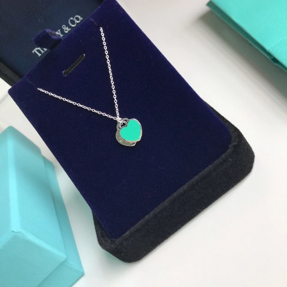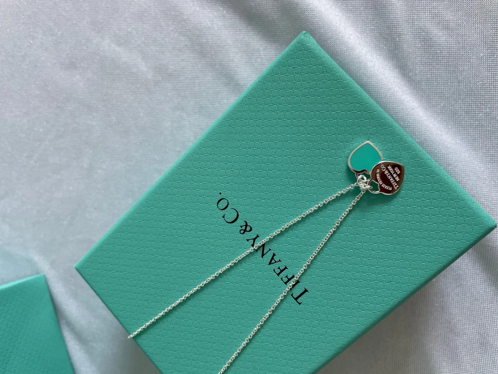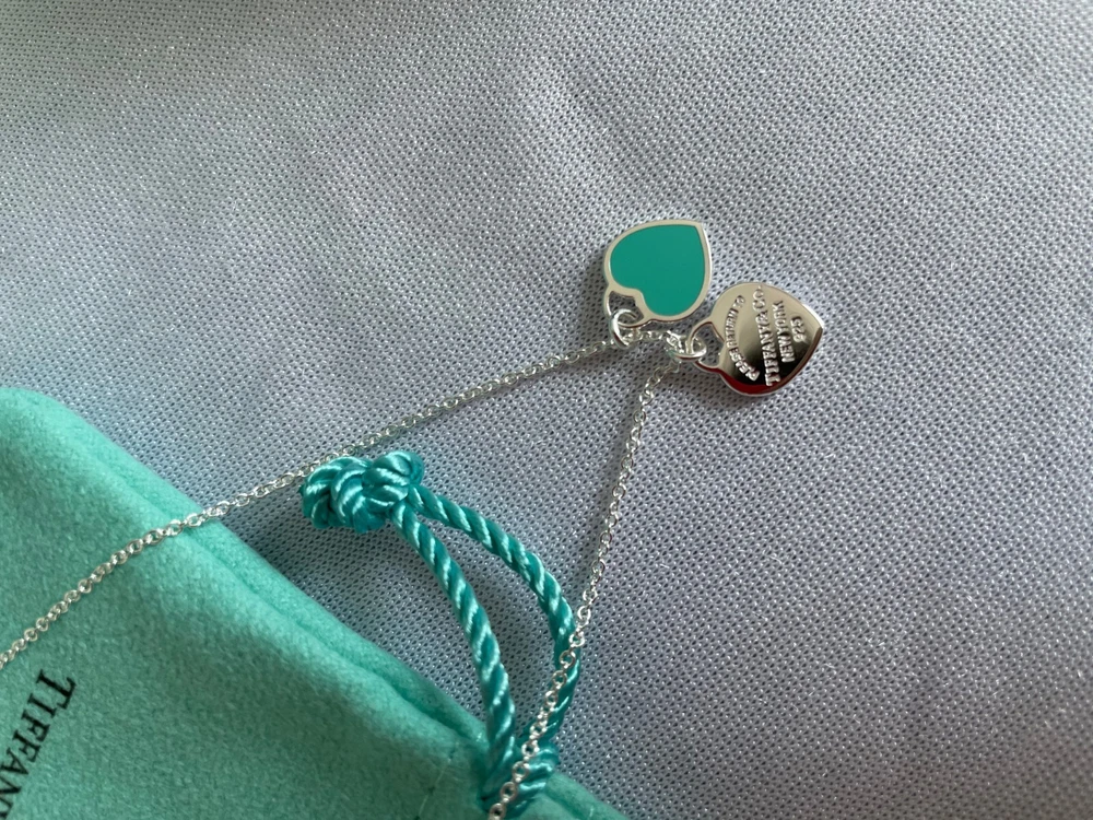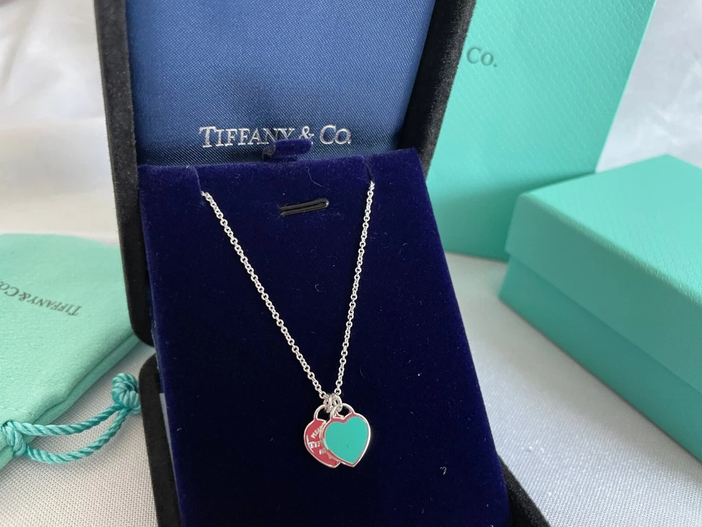 Tiffany & Co Double Heart Necklace Pendant Blue