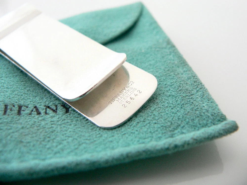 Overview: Offered for sale is a very rare and unique Tiffany and Co. Sterling Silver Eagle Arrow Money Clip. Very cool, retro piece that is sure to be a conversation starter! The money clip is in great condition. It will certainly be something that will be used on a daily basis. The clip is no longer in production, making it a great piece for the collector. Perfect surprise for that someone special! The piece is fully hallmarked and is guaranteed to be 100% authentic. It will come with its Tiffany pouch as shown! Perfect and ready for gifting! (The pouch does have some smudges - please see pics) Wonderful present for yourself or anyone you love! Will surely delight! Particulars: The money clip is approx 2.25 inches long. Metal & Hallmarks: Tiffany & Co. Makers / Sterling Solid 925 sterling silver Please check out my other unique and interesting Tiffany items on sale.