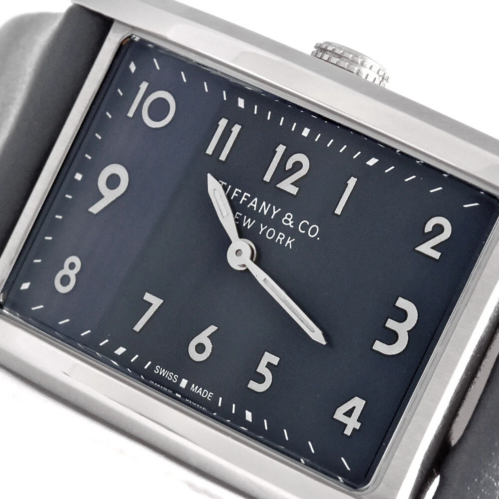 Tiffany Co. East West Mini 2 Hand Watch Quartz Navy Dial Double Wrap Strap W
