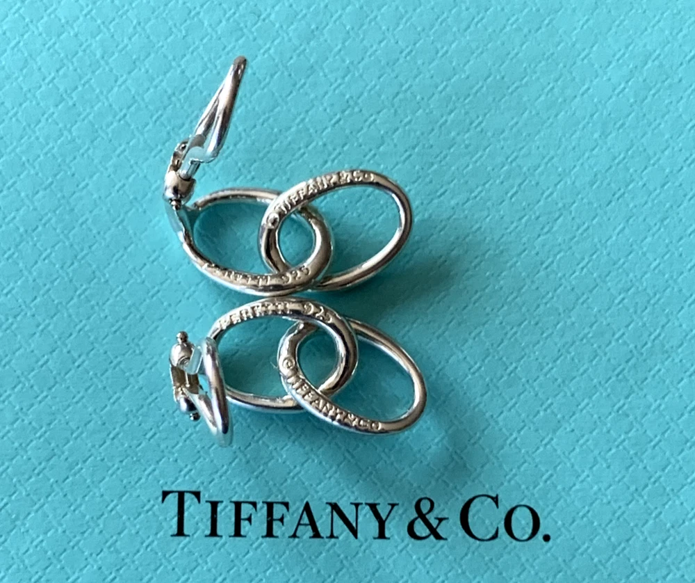 Tiffany & Co. Elsa Peretti Double Loop Earrings. Clip On. Measures approx. 3/4" long. Sterling Silver 925. No box or pouch. All Our Tiffany & Co. Items are Authentic.