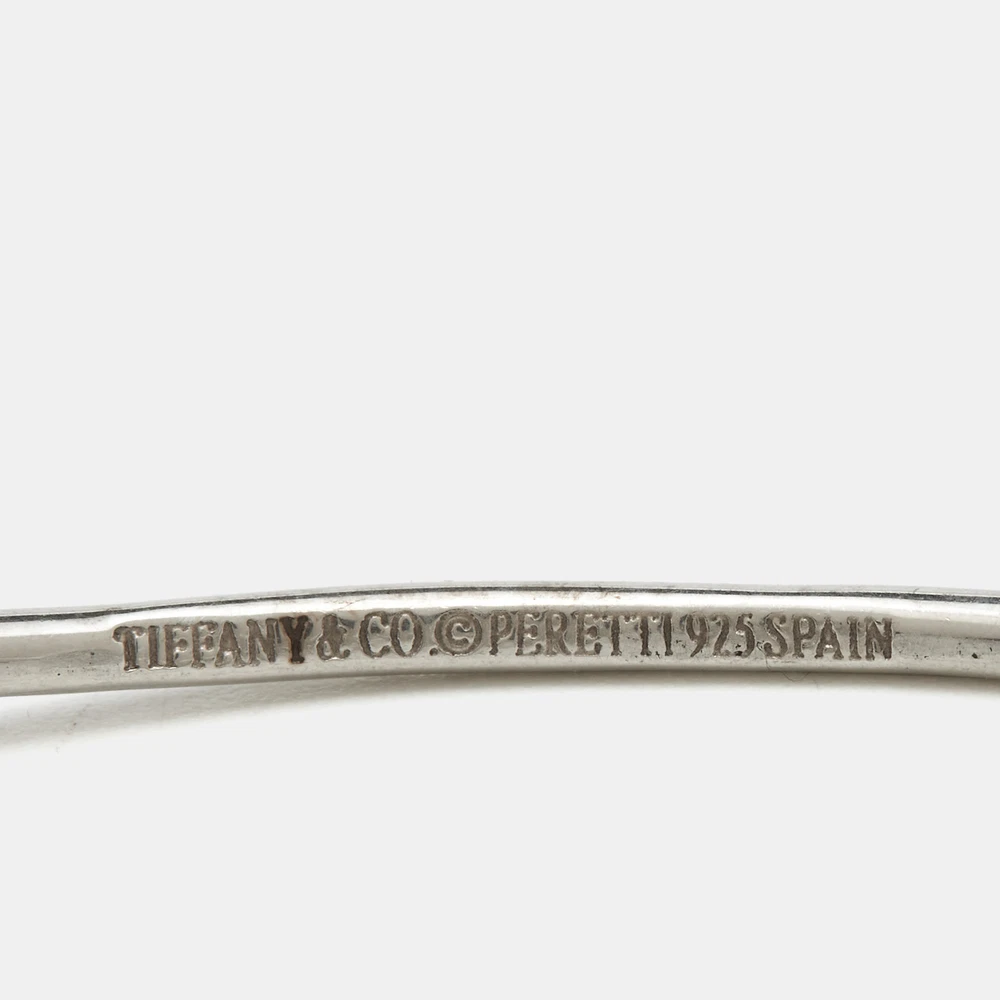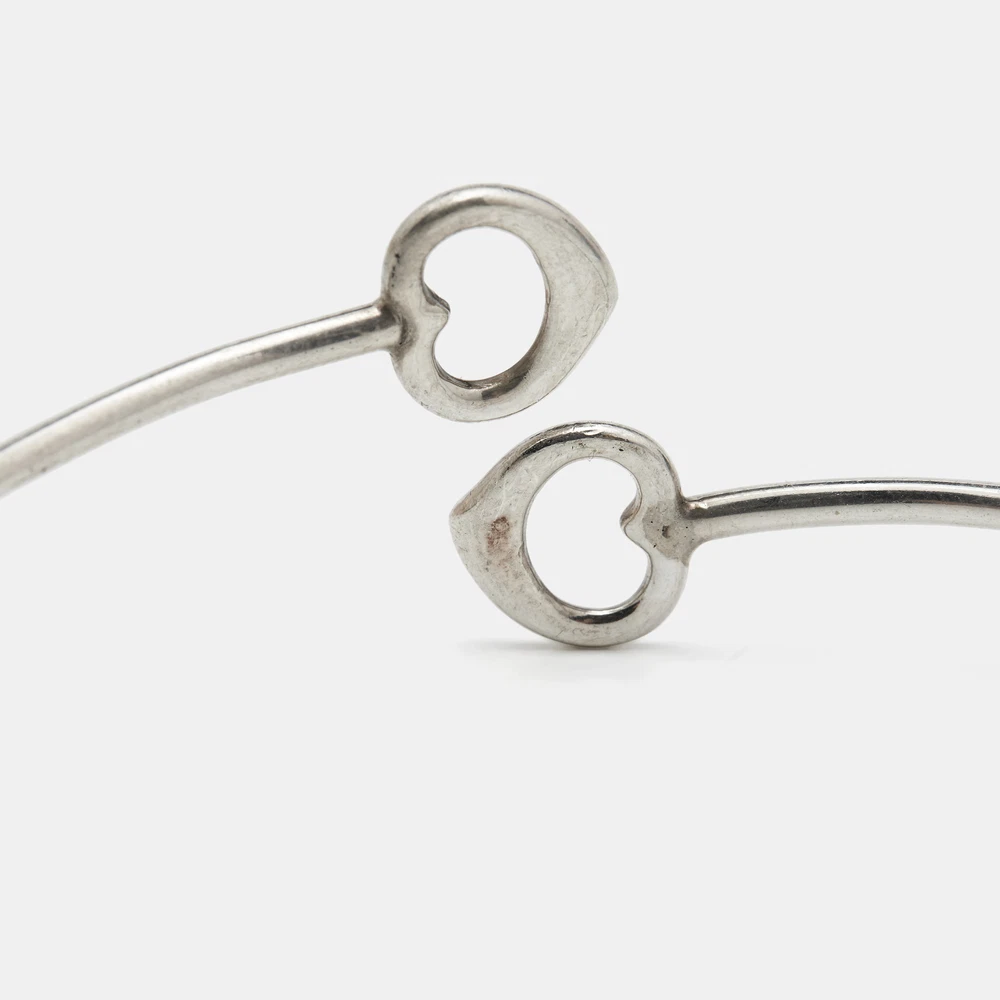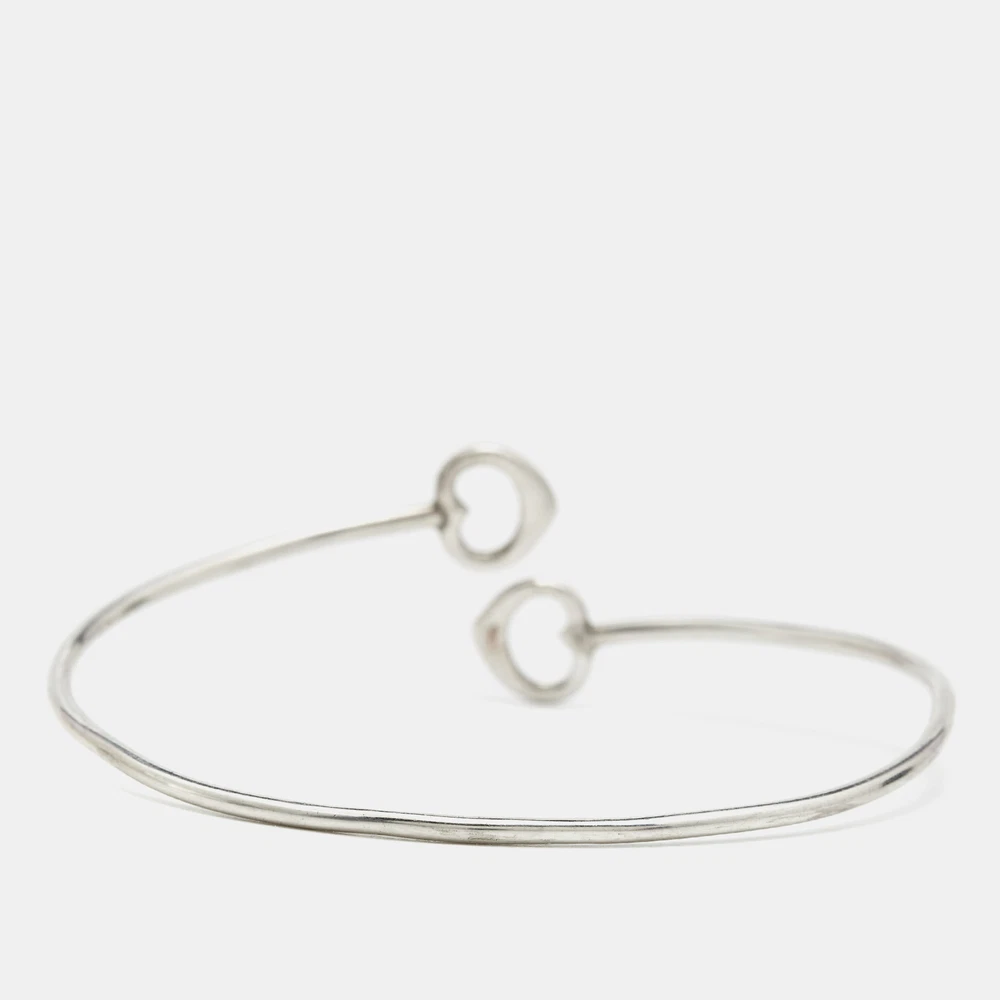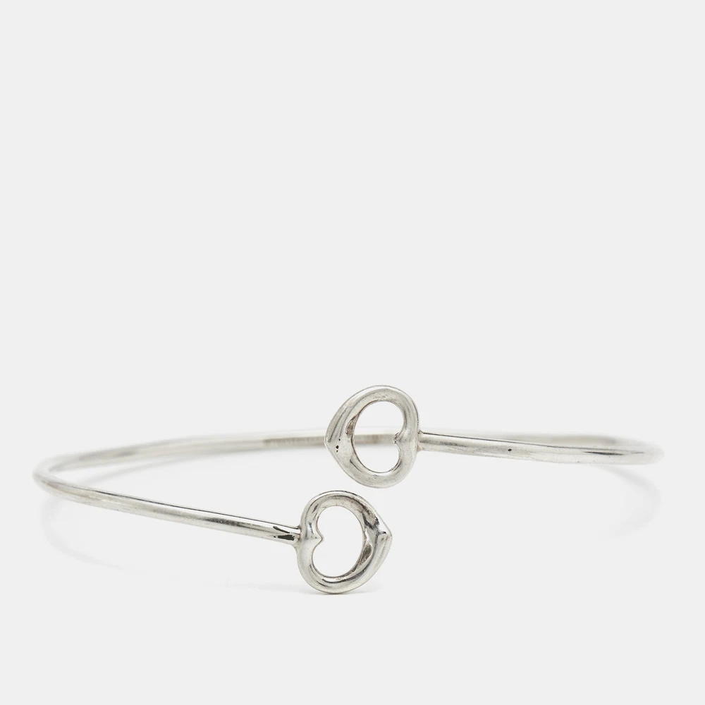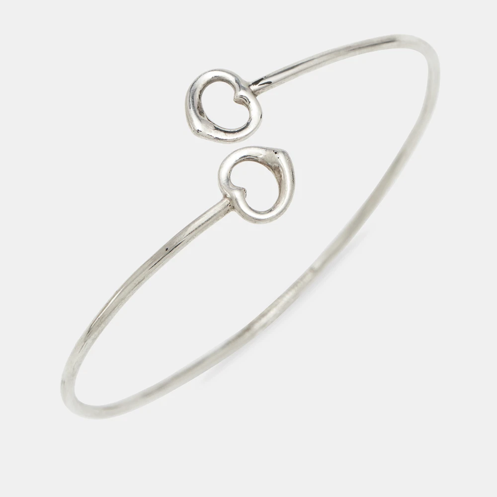 Tiffany and Co. brings this fabulous bracelet rendered in an elegant silhouette for the woman who is ready to ace every accessory game. It is sure to catch an eye and make your heart skip a beat. Flaunt it with your all looks, from formal to casual.Certified by The Luxury Closet - This item has gone through a detailed authentication process overseen by our experts. We offer a lifetime guarantee of authenticity on all our items. Import duties, taxes and charges are not included in the item price. These charges are the buyers responsibility. Please check with your country’s customs office to determine what these additional cost will be prior to buying. Our eBay Store About Us Contact Us Add to Favorite Sellers Tiffany & Co. Elsa Peretti Double Open Heart Sterling Silver Bracelet $245.3 Tiffany and Co. brings this fabulous bracelet rendered in an elegant silhouette for the woman who is ready to ace every accessory game. It is sure to catch an eye and make your heart skip a beat. Flaunt it with your all looks, from formal to casual. Product Details Brand Color Silver Dimensions Width: 1.05 cm (Motif) Material Size Outsole Width Outsole Length Heel Height Includes The Luxury Closet Packaging Certified by The Luxury Closet This item has gone through a detailed authentication process overseen by our experts. We offer a lifetime guarantee of authenticity on all our items. How We Check The in-house team of experts at The Luxury Closet is highly trained to verify the authenticity and the condition of the luxury products. They ensure that only 100% authentic items are put on sale.The evaluation process is unique with its own mix of assessment criteria and differs according to the category. Each item is evaluated based on the following combination of hallmarks, hardware, stitching, symmetry, material, craftsmanship, stamping, codes, hologram stickers, and packaging. Our authenticators also check if the items have been modified or amended (e.g., aftermarket diamonds, replaced batteries, repaired bags, etc.) International Buyers Import duties, taxes and charges are not included in the item price. These charges are the buyers responsibility. Please check with your country’s customs office to determine what these additional cost will be prior to buying.