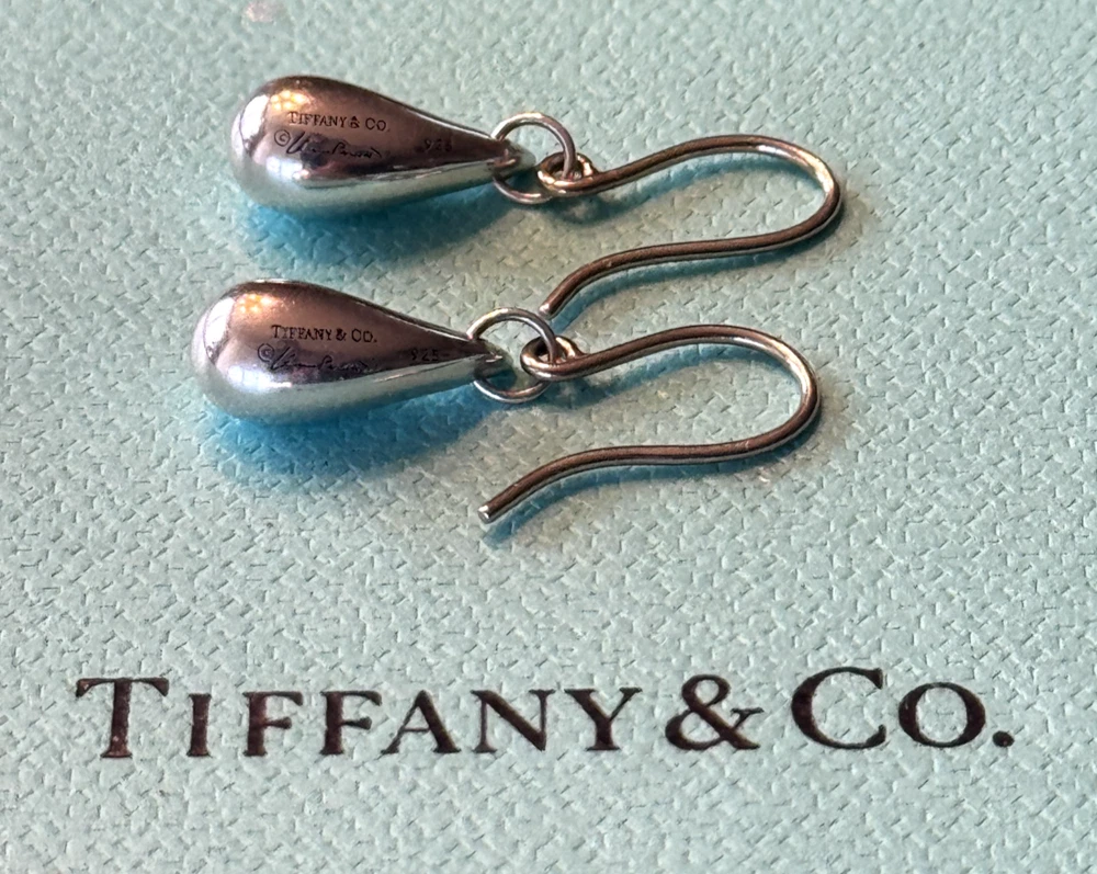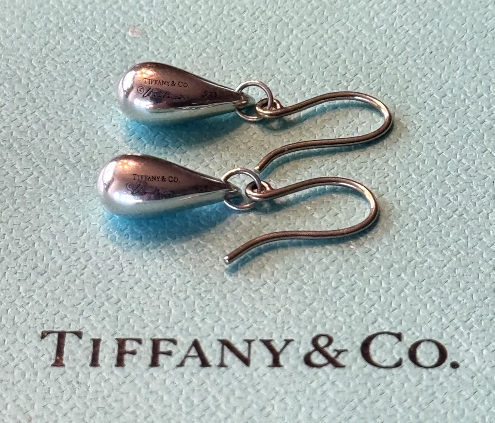 Tiffany & Co. Elsa Peretti Teardrop Earrings. Sterling Silver 925. No box or pouch. All Our Tiffany & Co. Items are Authentic.