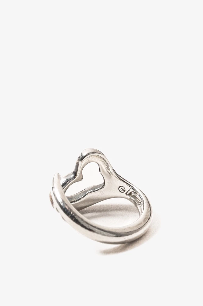 Celebrating the spirit of love, the Open Heart ring from Tiffany & Co. Elsa Peretti is crafted in a sterling silver, and its simple and evocative cutout heart is a timeless and elegant design. Size: 5 Condition: Excellent; very light tarnishing on edge of heart. Comes with dustbag. Approximate Measurements: Circumference: 2” (5 cm) Composition: Sterling silver.