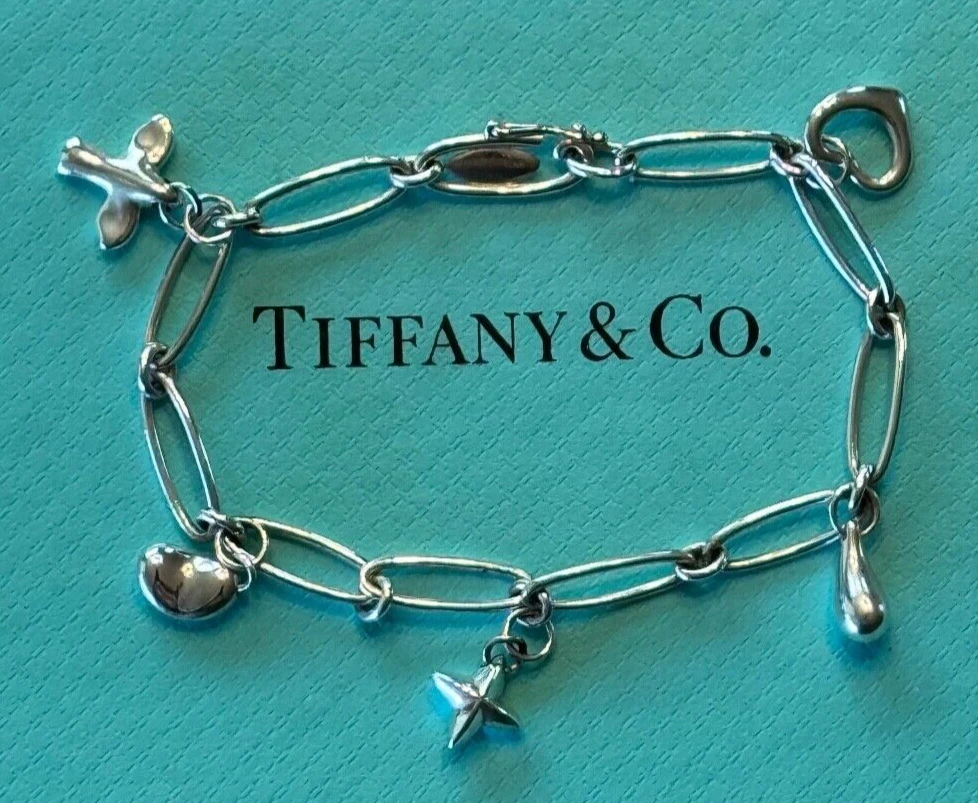 Tiffany & Co. Elsa Peretti Paperclip Charm Bracelet Bracelet Sterling Silver 925. Measures approx. 7 1/2". No box or pouch. All Our Tiffany & Co. Items are Authentic.