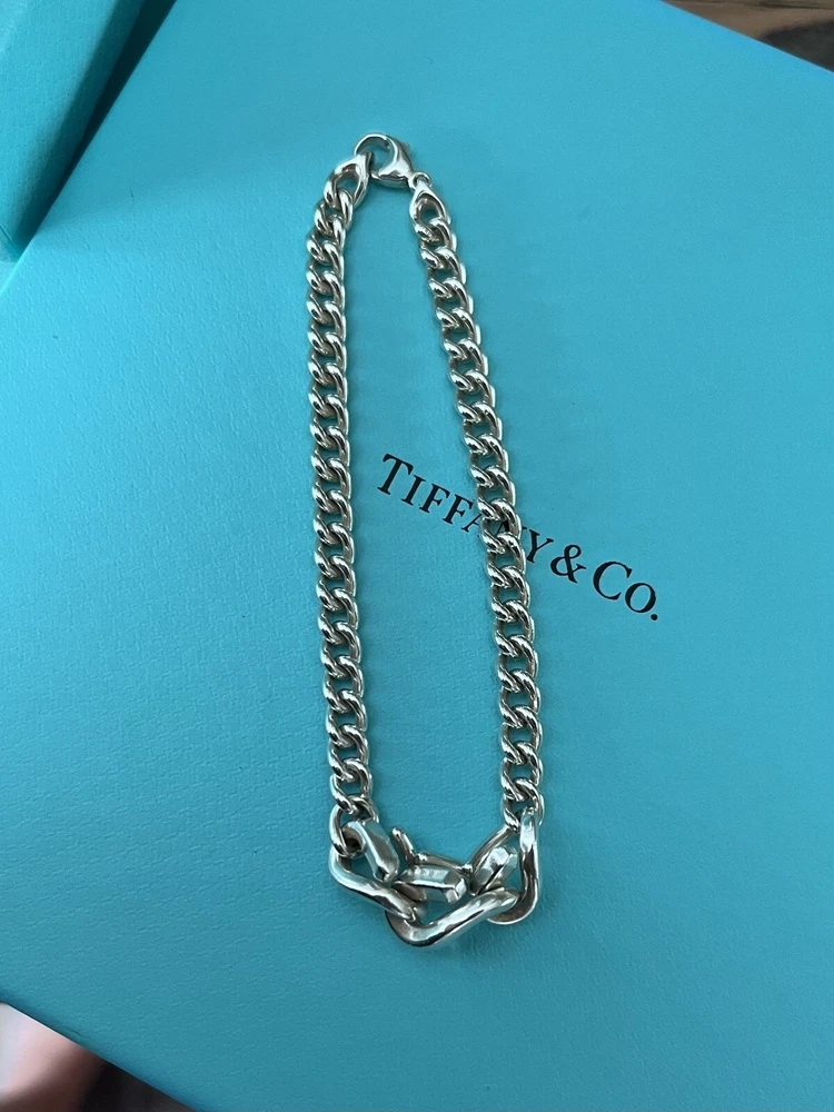 Gorgeous chain link bracelet from the “Forge” collection at Tiffany & Co. This bracelet is in excellent condition and measures approximately 8” long. It is crafted of the highest quality fine solid sterling silver and is hallmarked on one of the links, see photos. Will come securely packaged to you via Priority Mail, no box or pouch. Would make a great Christmas gift! 🩵🩵🩵 I am one girl, selling beautiful and authentic Tiffany & Co items on eBay for 18 years because I love Tiffany & Co and need to support my Tiffany obsession. My goal is 100% satisfaction for my buyers and 100% positive feedback from my buyers. I love what I do, I stand behind each item I sell, and I want you be happy with your Tiffany & Co pieces! 🩵🩵🩵 As always this item is guaranteed authentic.