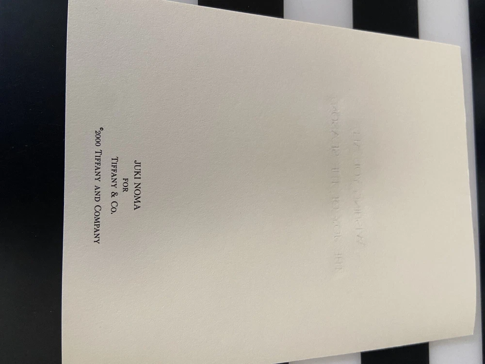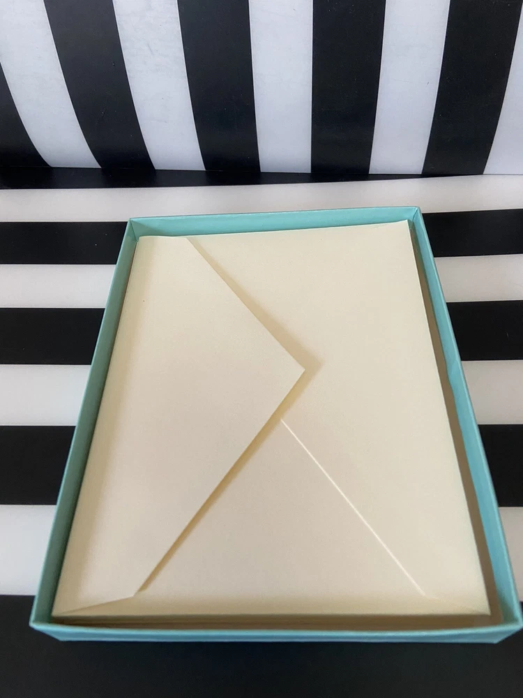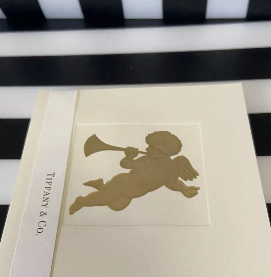 Tiffany & Co. Stationary Folded Gold Embossed Cherub Holiday Greeting Card Set 7 cards 7 Envelopes. Authentic. TCO CLASSIC LUXURY DESIGN BEAUTIFUL ECRU COLORED PAPER. Pre-Owned OPEN BOX. Originally It was a set of 10. SOLD AS IS CONDITION. USED. *****Box is in good condition except for black MARK on top. not bad for age. *****SEE PHOTO. BOX mark on box. Cards and envelopes are very good condition. Size 6 1/2 x 5” Inches. Designed by Artist Juki Noma for Tiffany & Co. Year 2000. Boxed Gift Set. HOLIDAY GOLD EMBOSSED COLORED CHERUB DESIGN with Holiday Greeting Inside. Collectors Item from year 2000. *****See all photos. What you see is what you get. Minor marks/ flaws to the outside cover box. Really Beautiful Card Set. ******No International shipping or Returns. Comes from a Non c19, pet and smoke free home. *****SHIPPED BY PRIORITY USPS***FAST SAFE SECURE AND INSURED TRACKING to USA ONLY. Thanks for shopping. Please See other items. 😉 I APPRECIATE 100% positive feedback thank you!