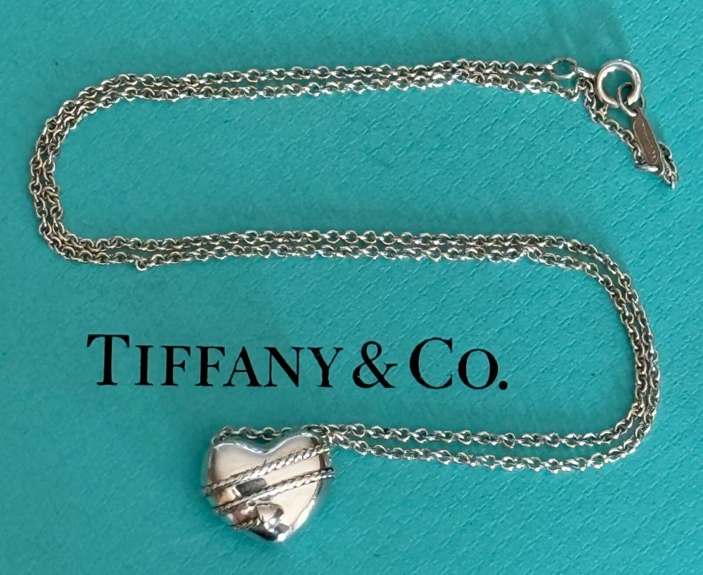 Modified Item: No Closure: Spring Ring Brand: Tiffany & Co. Collection: Tiffany & Co. Hearts Theme: Love & Hearts, Love Seller Notes: “Highly Polished. No box or pouch.Please view picture.” Gender: Female UPC: Does not apply Chain Type: Cable Metal Purity: 925 parts per 1000 Necklace Length: 18 in Type: Necklace gtin13: Does not apply Metal: Sterling Silver Style: Chain, Pendant Pendant Shape: Heart Color: Silver Main Stone: No Stone Signed: Yes Base Metal: Sterling Silver